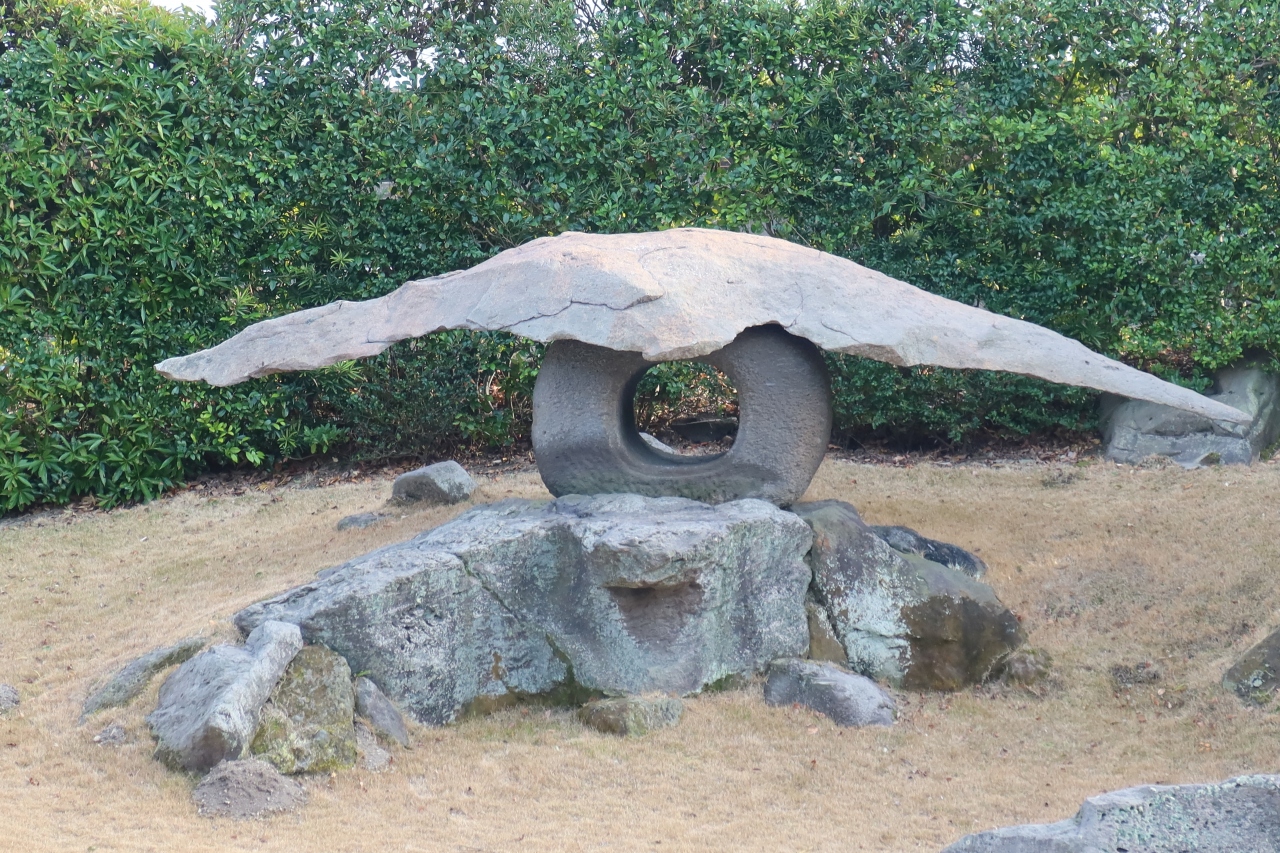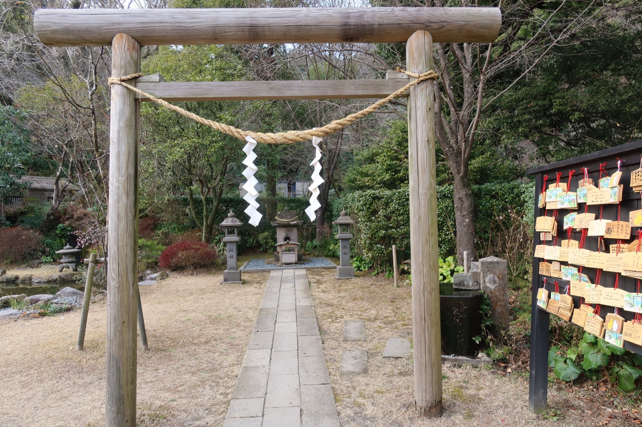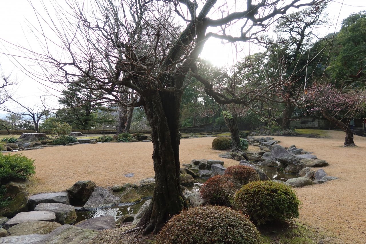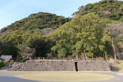 仙巌園の正面入口から土産処を過ぎた先の、国道に面した所に仙巌園正門があります。明治28年に建てられた門で江戸時代のものではありません。瓦や、上部には丸十の島津の家紋が施され、殿様の別邸らしい風格のある門です。
