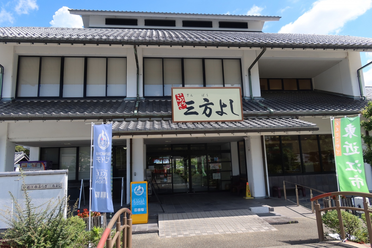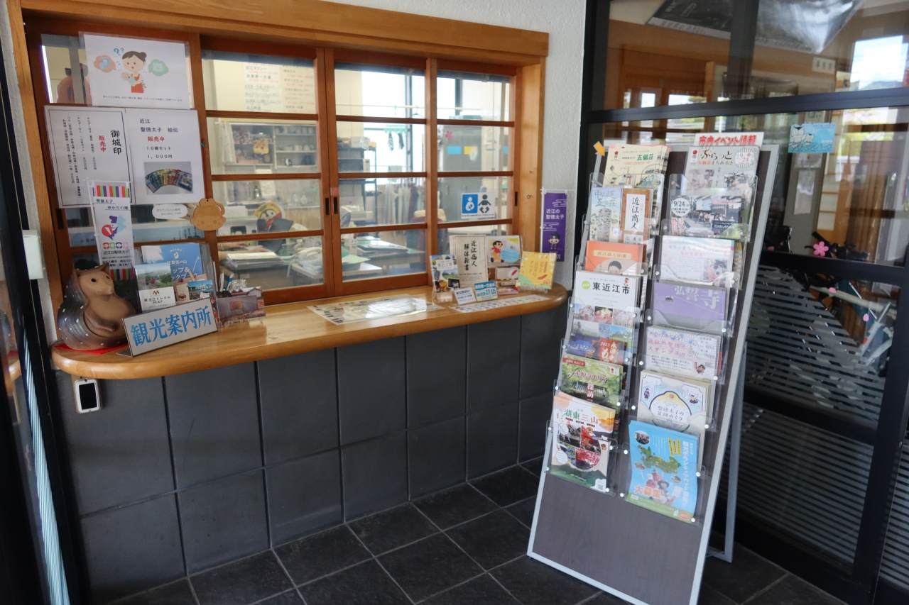 五箇荘 金堂地区から南に行った所にある塚本交差点の角にぷらざ三方よしがあります。金堂地区を散策したあとに休憩しに立ち寄りました。館内には観光パンフレットや、観光土産が置かれていますが、大した物はおかれてなく数も少ないため、対面の五個荘観光センターで土産を買いました。