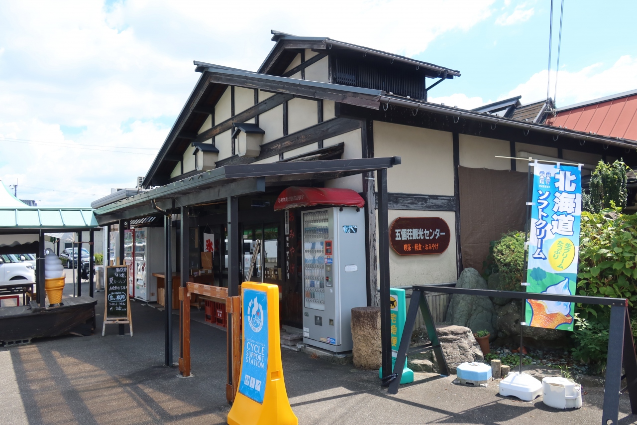 五箇荘 金堂地区から南に行った所にある塚本交差点の角、ぷらざ三方よしの対面に五個荘観光センターがあります。中では物産販売の他、軽食コーナーもあり休憩することができます。ぷらざ三方よしとは比較にならない程商品が多く土産を買うならここがお薦めです。