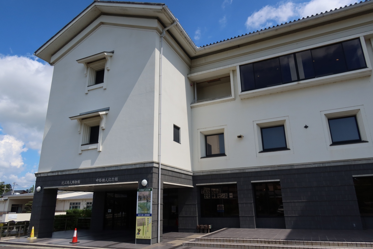 五箇荘小学校の東側対面に近江商人博物館があります。博物館の展示室は3階にあり、五個荘近江商人屋敷のセット券では2階の中路融人記念館も観ることができます。