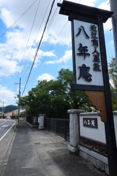 金堂地区から五個荘観光センターを過ぎて、緩やかなカーブを曲がった所に八年庵あります。ワコールの創業家として知られる塚本家の屋敷で、見学したかったのですが、不定休に当たってしまったのか、開館してませんでした。