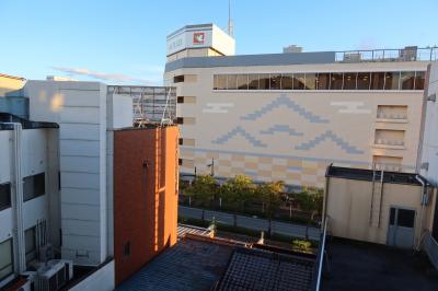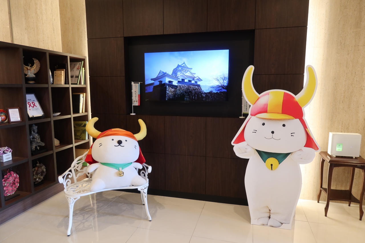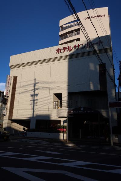 JR彦根駅西側の旭町交差点のすぐ近くにあるホテルサンルート彦根に宿泊しました。1階にはひこにゃんの人形や、甲冑等が置かれ彦根観光を意識した感じです。