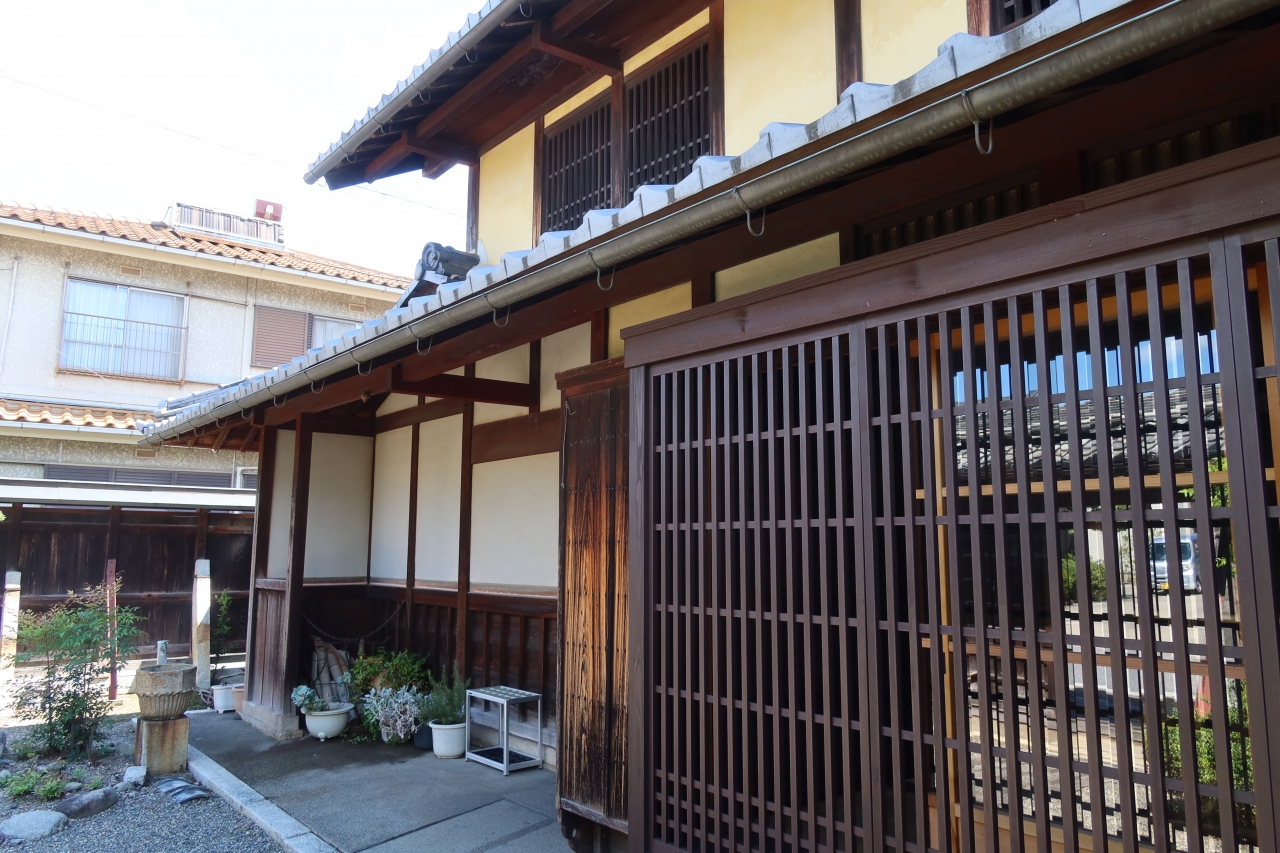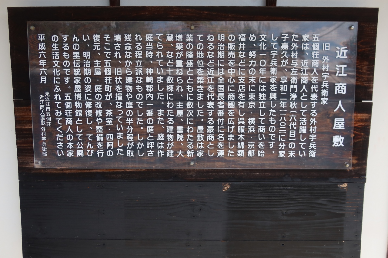 五箇荘の金堂地区にある外村宇兵衛邸から用水路沿いに西に入った所に外村繁邸があります。外村繁は外村宇兵衛の分家になります。