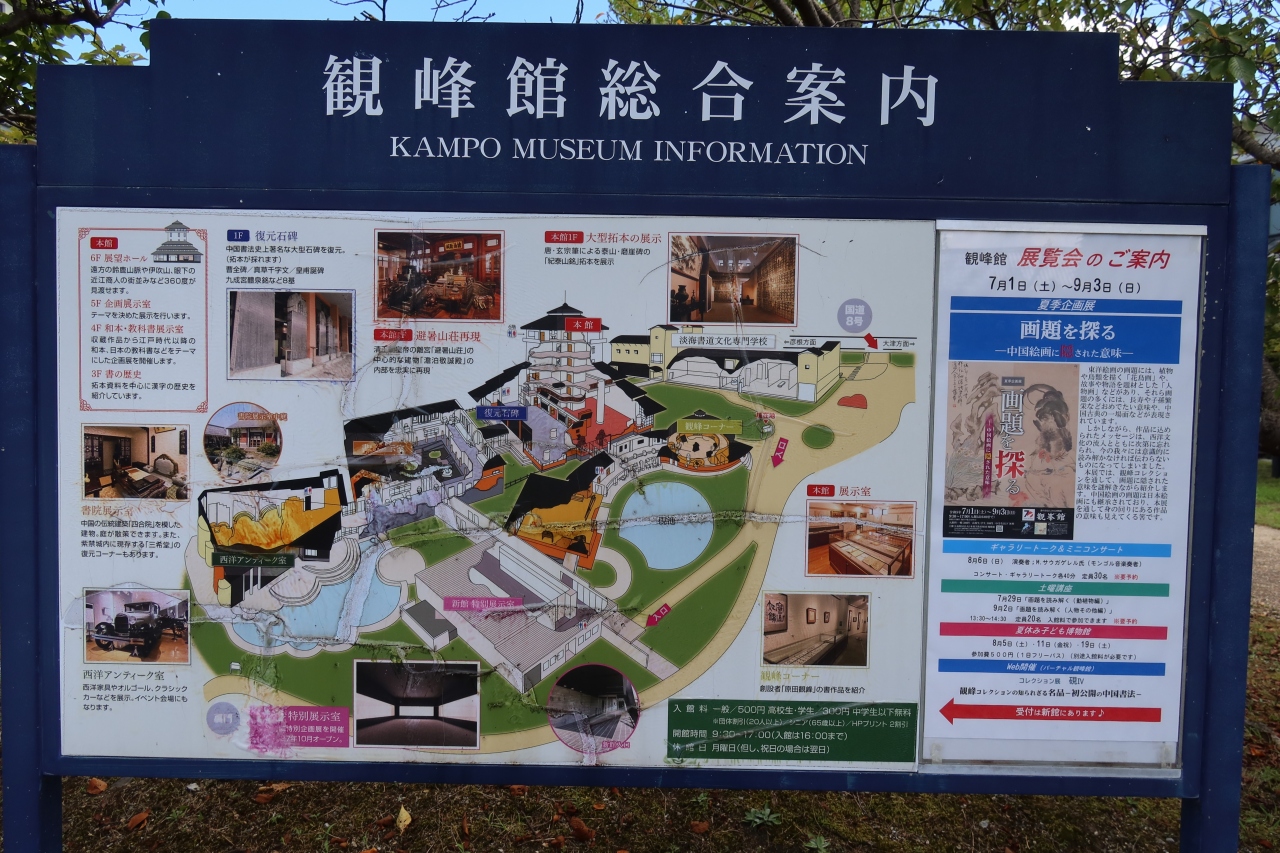 五箇荘駅から西に599mほど、国道8号線沿いにある展望台の様な建物が観峰館です。妻が書に興味があり観峰館を訪問しました。館内では日本や中国の書にまつわる書画や、拓本等の資料が展示されています。今回、書の展示をみて、改めて書の奥深さが少し分かったような気がしました