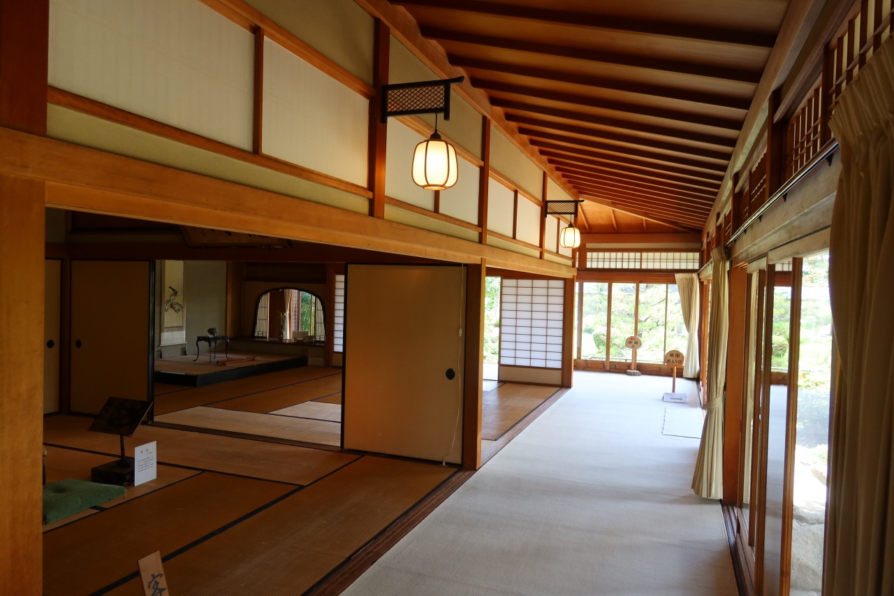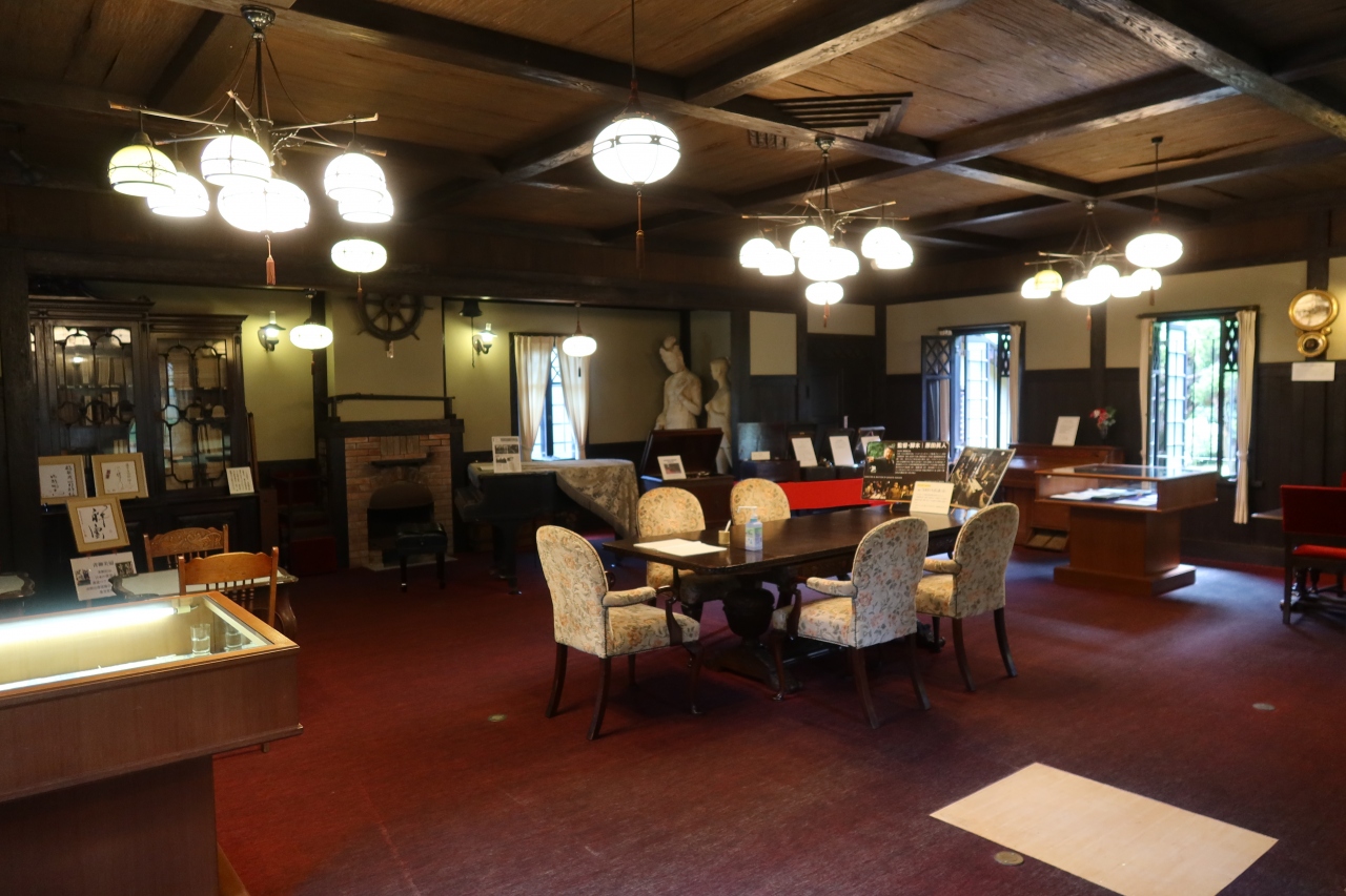 邸宅は総檜造りの客殿、主屋、スイスのシャレーを模した洋館等があります。特に客殿に使用されている木材は豪華で贅沢のもので、驚かされました。