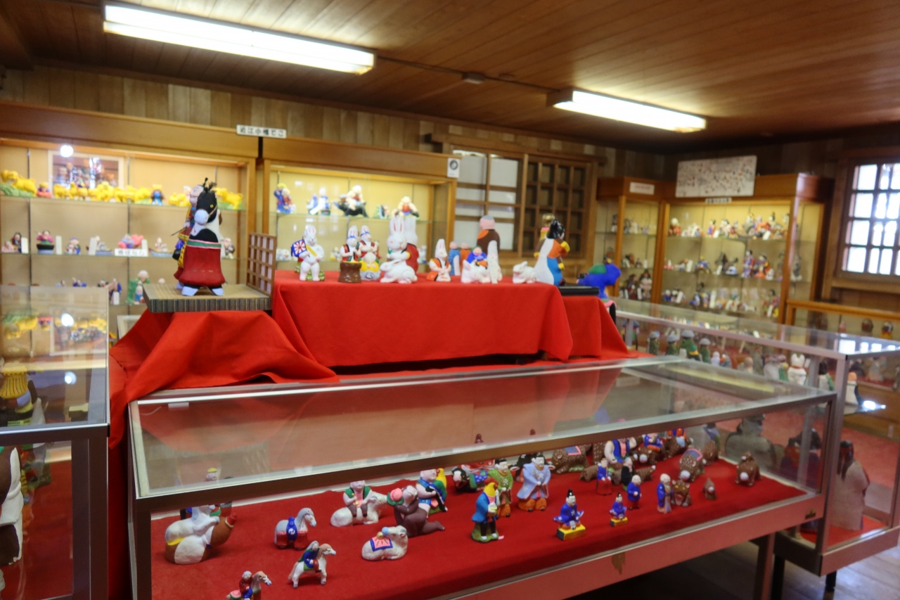 五箇荘の金堂地区に残る近江商人屋敷の一つが中江準五郎邸です。大正期から昭和初期に朝鮮、中国で三中井百貨店を展開した人物の邸宅で、邸内には屋敷の他、池泉回遊式の庭園や2棟の蔵があります。蔵の中では郷土人形の「小幡人形」が展示されており、とても可愛いです。小幡人形を買える所があるか聞いてみたのですが、現在は作られている所が余りなく売られてはいないという話でした。