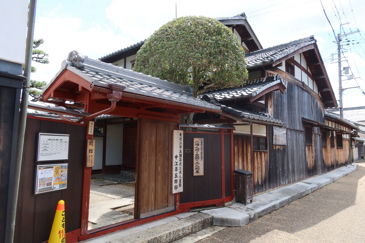 五箇荘の金堂地区を通るあきんど通り沿いに金堂まちなみ保存交流館があります。三中井百貨店で知られる中江富十郎の旧邸宅で、唯一無料で見学することができる近江商人屋敷です。邸宅内では生け花の展示や、特産品の販売もされており、休憩、情報入手ができます。