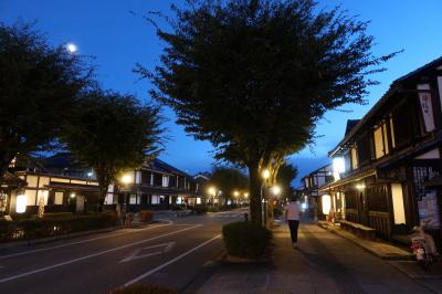 夜日が暮れたあと夕飯を食べに行きました。丁度、マジックアワーの空に月が浮かび、商店の灯がともる景色がとても綺麗でした。- 旅行時期