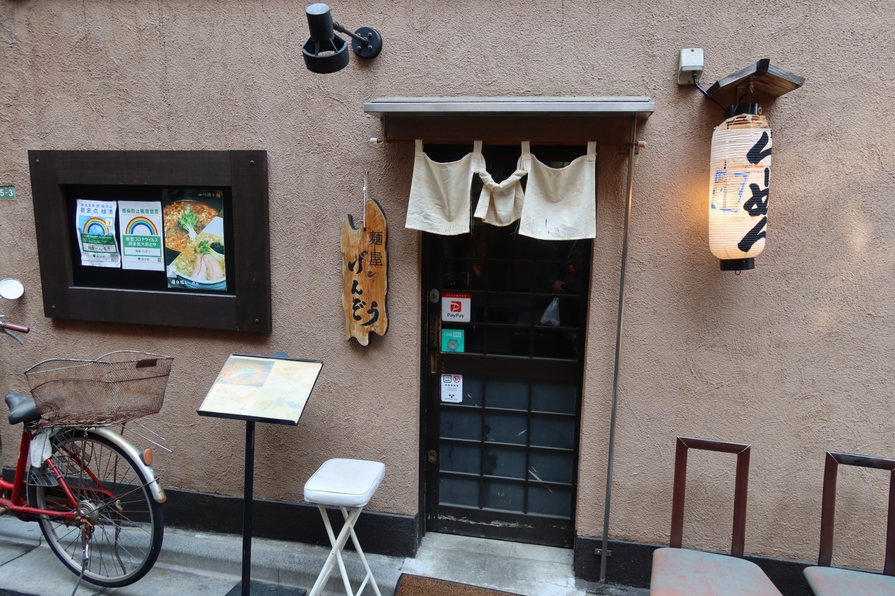 湯島駅のある天神下交差点から一筋南の路地を東に入った所に麺屋げんぞうがあります。店内はカウンター5席のとっても小さなお店で一人で切り盛りされているようです。平日のお昼にいくと外は3人程の入店待ち。10分程で入れました。