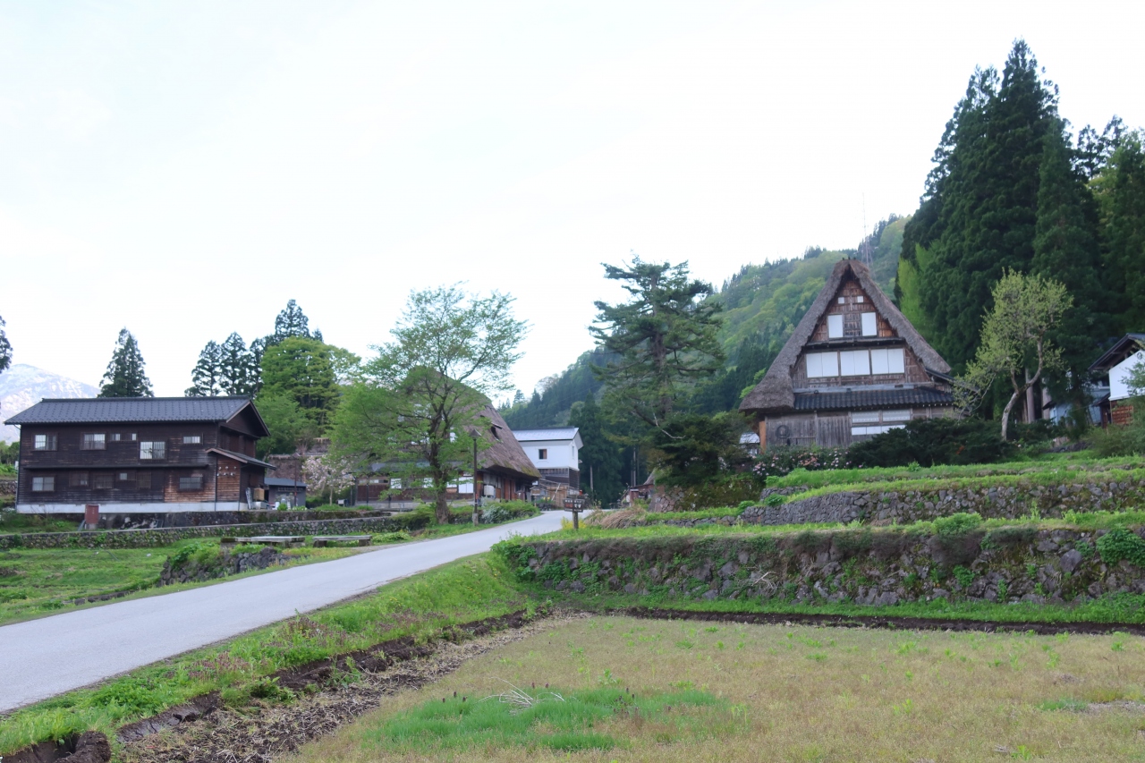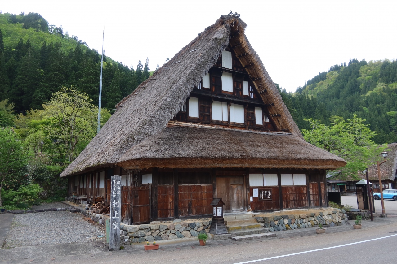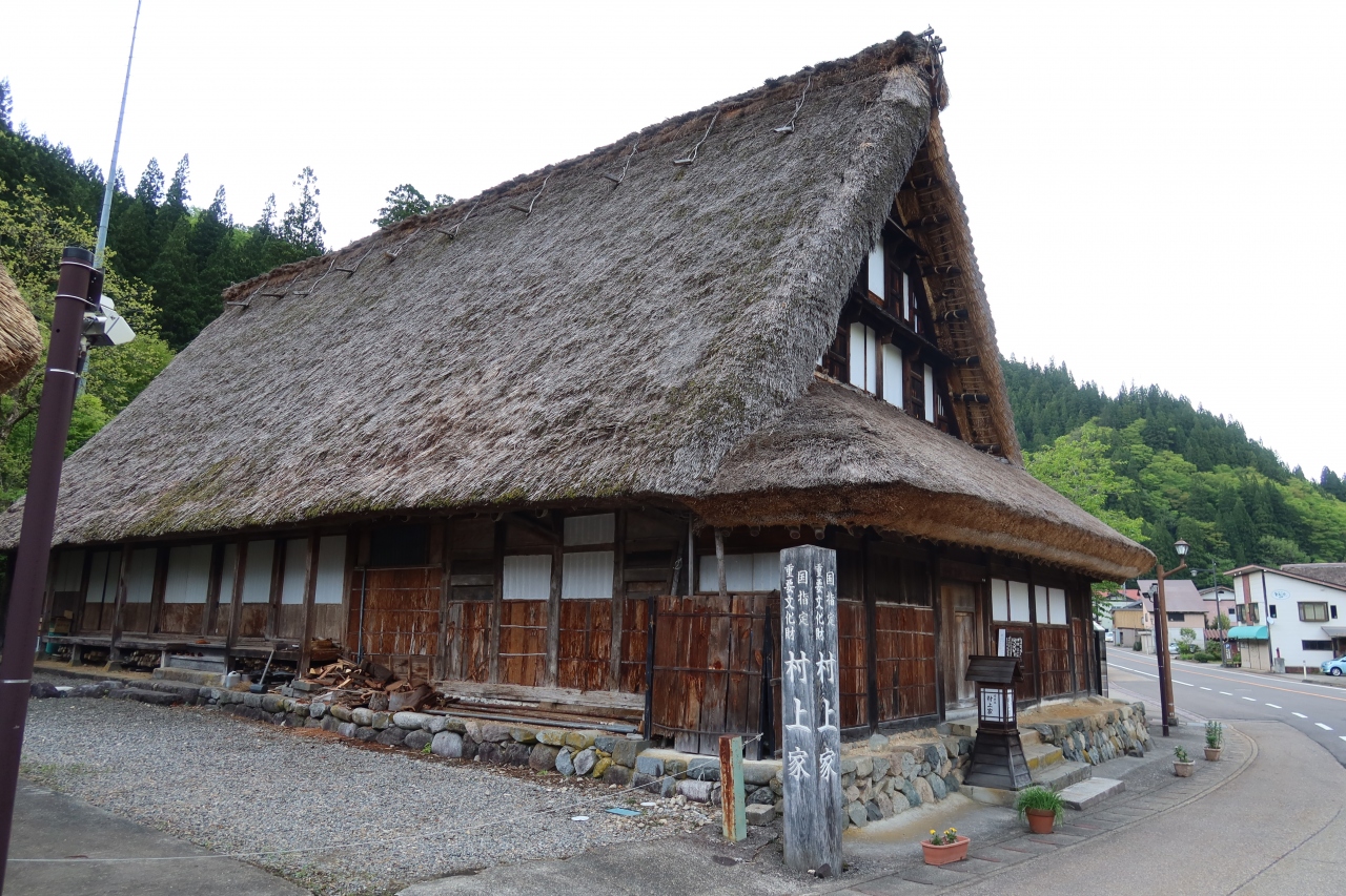 五箇山の菅沼集落から相倉集落に向かう途中、五箇山総合案内所の並びに村上家住宅があります。約400年前に建てられた合掌造り住宅で昔の建築様式を残す住宅で需要文化財にしていされています。同じ合掌造りで重要文化財に指定される和田家住宅、岩瀬家住宅と比較するとこじんまりした感じがします。訪れたのが遅く、中は見学できなかったのが残念でした。