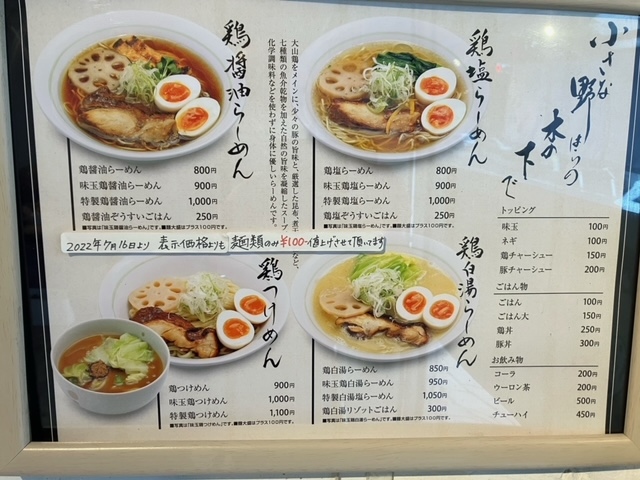 藤が丘駅から5分程歩いたもえぎ野公園前交差点の一角にあるラーメン店です。以前この辺りを通った時にはなかったので、最近開店してようです。店内はカウンター席6席とテーブル席が2卓とこじんまりとしたお店です。平日の11:15に行くと先客が2組。