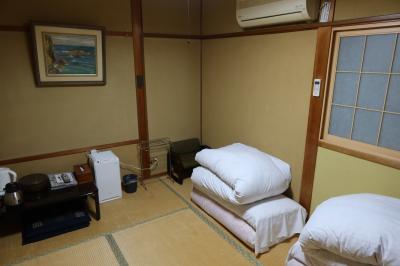 紀伊長島駅から車で約10分の古里地区にある民宿です。親戚含め6人で宿泊しました。宿泊した梅の間は6畳間とたぶん、2階で一番狭い畳敷きの部屋。部屋にはエアコン、テレビ、空気清浄機があり、自分で布団を敷きます。