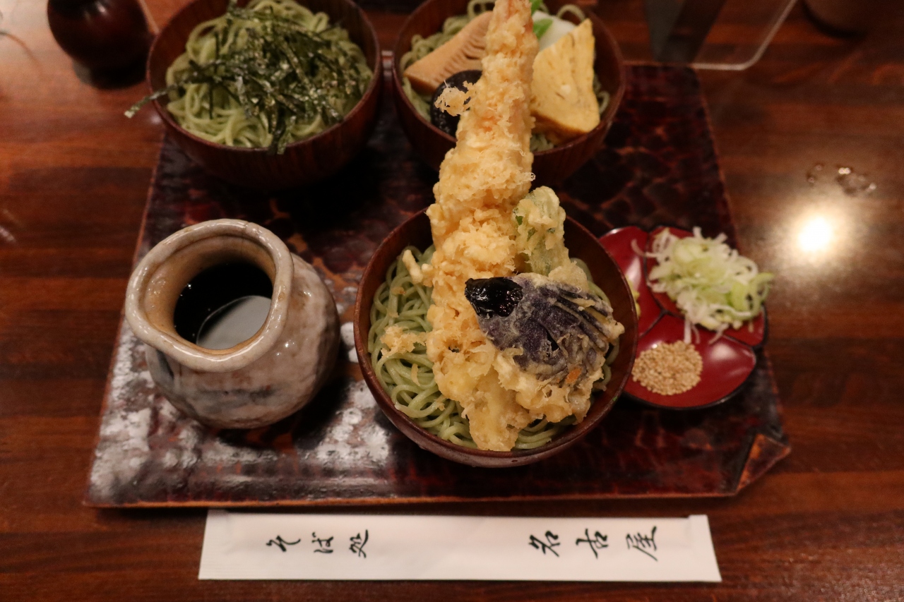 箱根駅伝の良く知られる権太坂の途中、権太坂スクエアの対面に古民家風のお店があります。それがそば処 名古屋です。車でないと行くのが不便ですが、土曜日昼過ぎに行くとほぼ満席(待たずに入れました)。頂いたのは肉うどんと大名蕎麦。肉うどんは牛ではなく、豚肉で驚きましたが、良い出汁の効いた汁にうどんが良く合います。大名蕎麦は3種の蕎麦ですが、海老の天ぷらが食べ応えがあります。蕎麦の美味しいですが、この海老天には驚きました。コスパの良く良いお店でした。