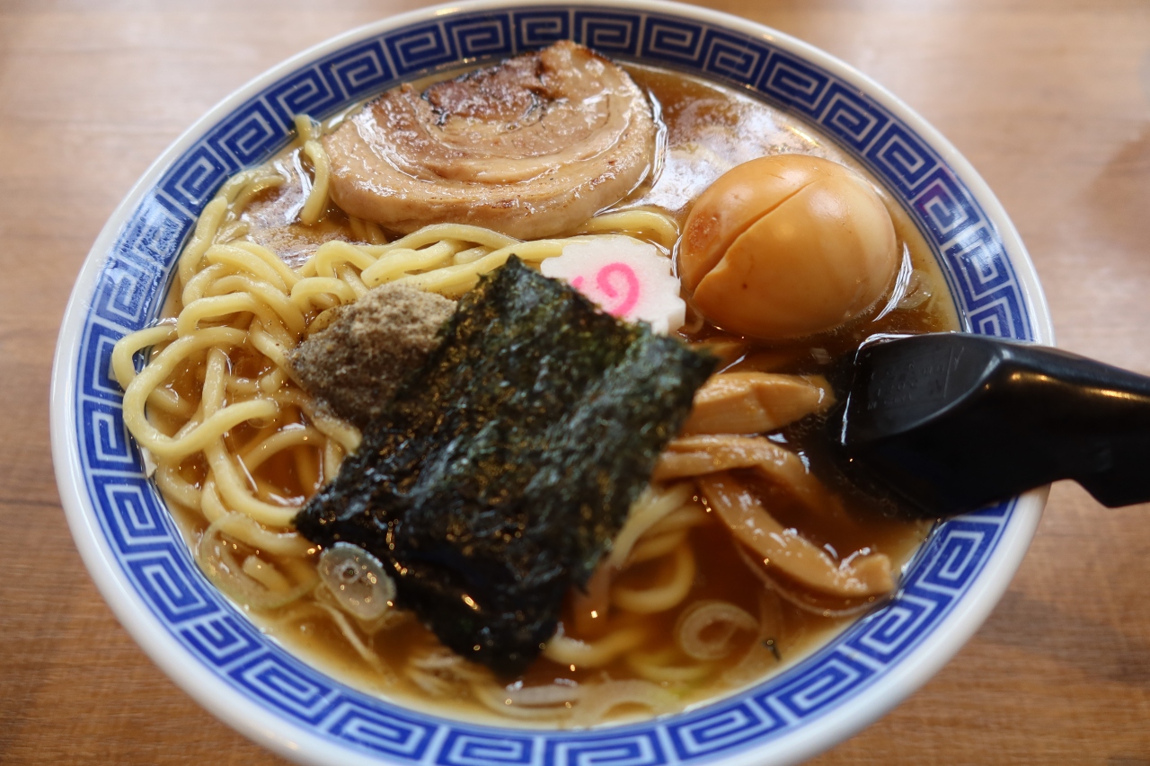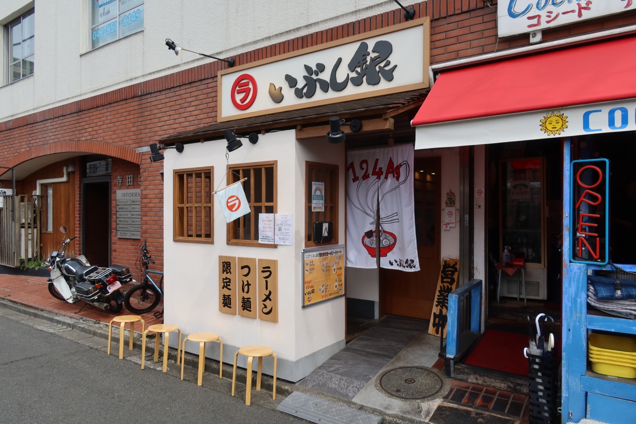 小田急線町田駅から北へ線路沿いに3分程歩いた所にあるラーメン店です。店内にカウンター席、入口左手にテーブル席が一つだけあります。ラーメンはつけ麺もありますが、頂いたのは一番人気のジャパン。煮干し醤油のスープに特徴的なのは極太麺のラーメン。普通盛りでも、他のラーメン店ならば中盛りほどの量があり、コスパも良く、勿論味も美味です。