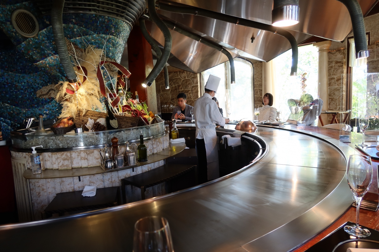 鉄板焼きのカウンターでは客一組にシェフが付き目の前で調理してくれます。頂いたコースは、どれもこれも口がとろける様な美味しさで何度も頷いてしました。