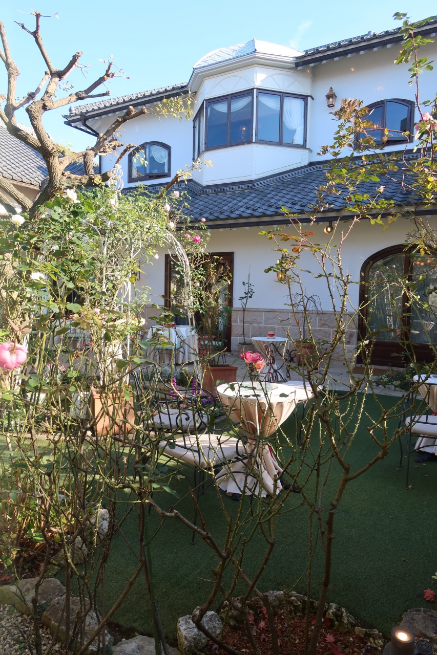 あざみ野の住宅街の中にある高級料理店です。クリスマスランチで利用しました。南仏プロバンスから移築した家屋を改装したお店はバラの花咲く庭があり、如何にも高級店の風格。