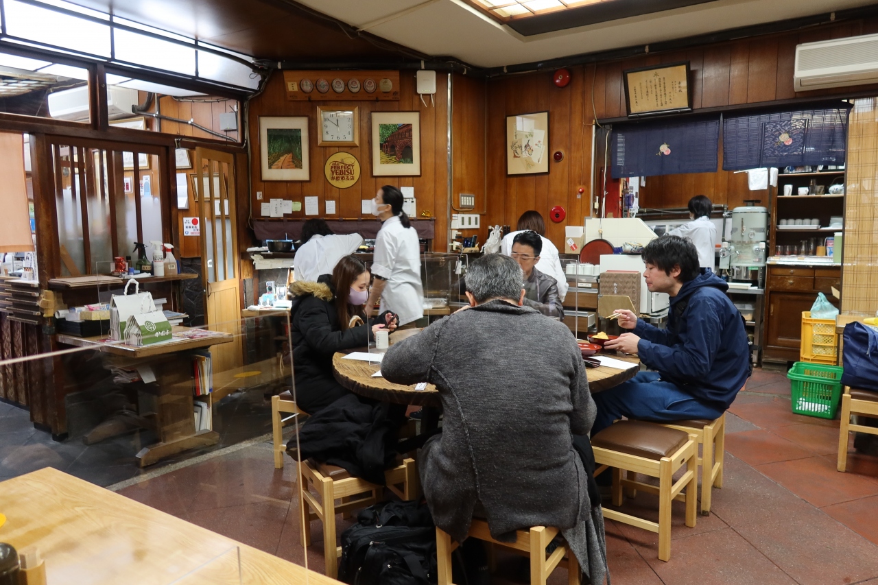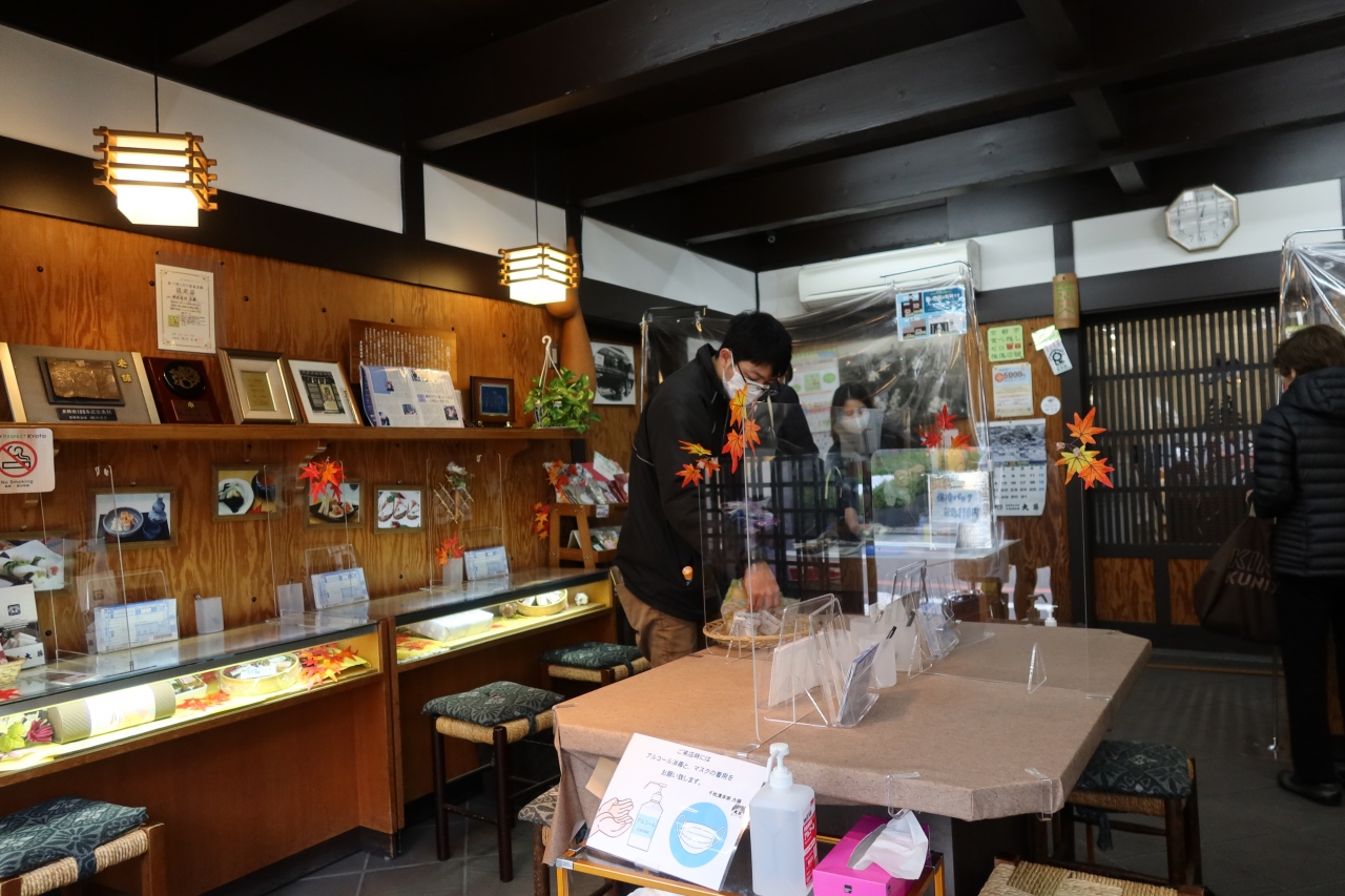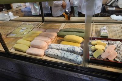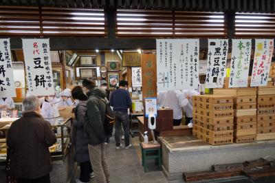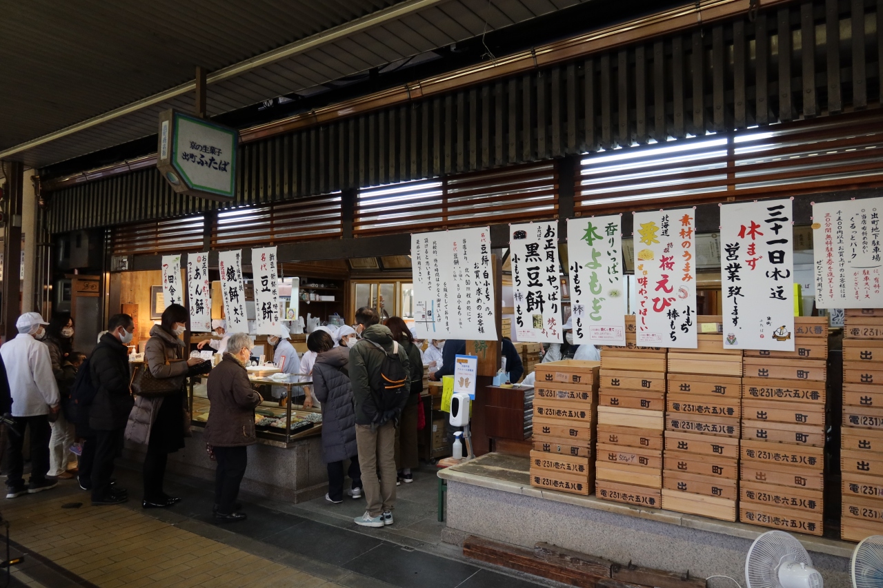 今出川河原町交差点から50m程北に行ったところに出町ふたばがあります。お餅の専門店で中でも一番に人気は豆餅。いつもだと店頭には二重三重の列が出来ているのですが、こちらもコロナの影響なのか、珍しく1列しか並んでおらず、すぐに購入することが出来ました。久々に頂いた豆餅はもちもちの皮、滑らかな餡子、食感の良い豆が相まって絶品でした。