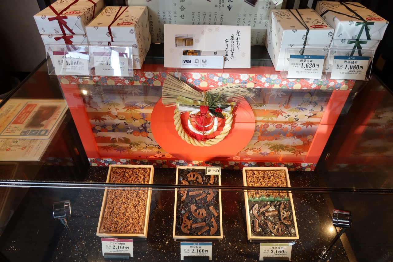 花見小路から四条通りを西に30m程行った所(北側)にチリメン山椒の はれま 祇園店があります。こちらのお薦めは勿論、チリメン山椒。おじゃこと山椒の身を醤油で煮詰めたもので、ご飯の上にかけて食べると食が進みます。お弁当に最適。お徳用のチリメン山椒があるので、自宅用ならばそちらがお薦めです。