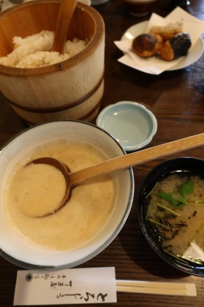 旧東海道の鞠子宿にあるとろろ汁のお店です。前回訪れた時の味が忘れられず約1年半ぶりの再訪。頂いたのはとろろ汁、麦飯、味噌汁、漬物の丸子定食ととろろ揚げ。味噌で味付けされたとろろ汁を麦飯のに上に掛けて食べると何杯でも頂けます。麦飯はお替り自由なのでそれも嬉しい。消化も良く、ヘルシーなとろろ汁は何回でも訪れたいお店です。