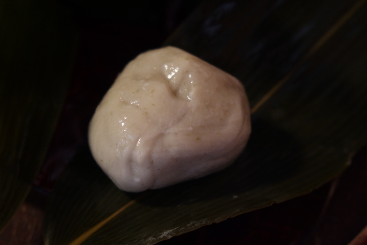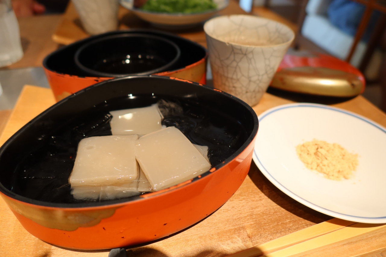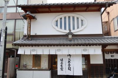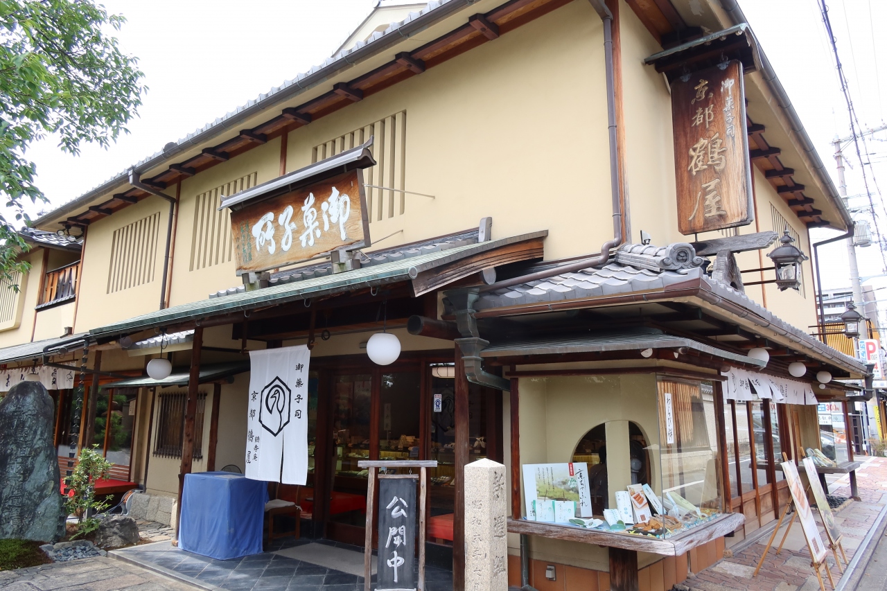 京都府庁の前から西洞院通りを100m程下った西側に生麩の老舗店の麸嘉の本店があります。江戸時代から続く老舗だけあり、暖簾の掛かった店構えに歴史を感じます。頂いたのは勿論名物の麩饅頭。笹の葉に包まれた麩饅頭はみずみずしく、冷たく、上品な味。あまえびの掛け軸を見ながら食べる麩饅頭はおつな物です。しかし、こちらで麩饅頭を食べるには予約をしなければ食べられません。行った時も追加で食べたかったのですが、品切れ。予約必須です。