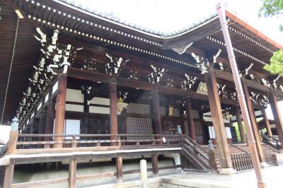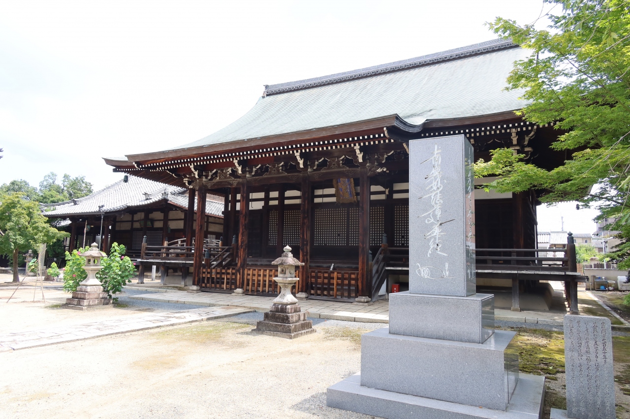 堀川寺之内交差点から寺之内通りを150m程東に行った北側に妙顕寺があります。日蓮宗四大本山の一つに数えられ、鎌倉時代後期の1321年創建の古刹で、とても広い境内に大門、鐘楼、本堂、三菩薩堂などがある他、宿坊もある大きなお寺です。しかし、観光的には見応えのあるものはなく、観光客も殆どいません。
