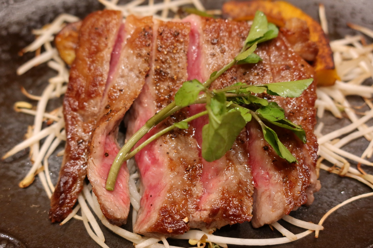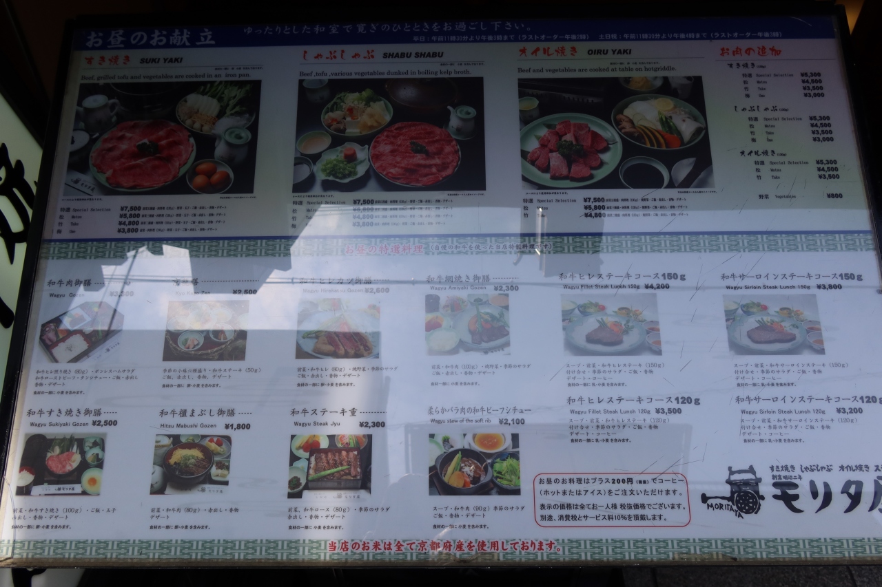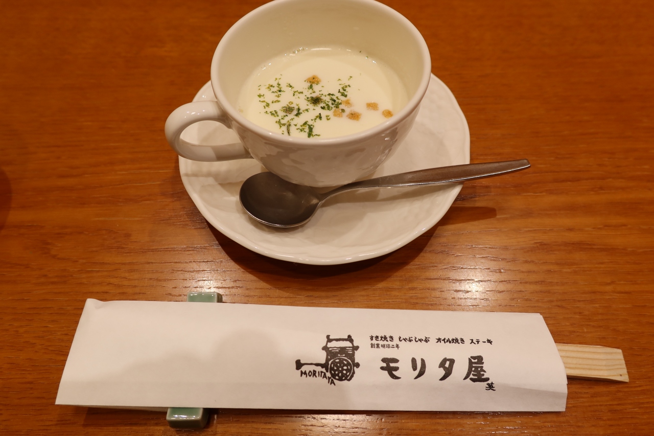 阪急 大宮駅から50m程東に行った所にモリタ屋 四条猪熊本店があります。開店してすぐに入ると予約もしていないのに個室に通して頂けました(コロナ対策のためでしょうか)。頂いたのは和牛サーロインステーキのコース。本来3200円で120gの肉なのですが、増量サービスで同じ値段で150gの肉が頂けました。スープ、前菜、サラダ、お新香、ご飯(お替り可)がついてこの値段、この味とは驚き。東京ではこんな店はありません。味もサービスも良く大満足のお店でした。