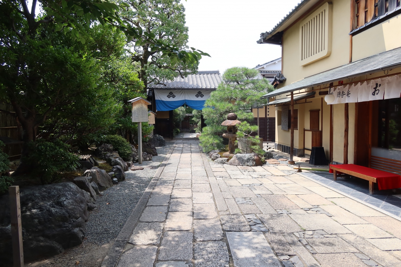 新選組屯所として使われた八木邸の入口右手にある和菓子店です。屯所餅が有名なお店ですが、八木邸の入館券もこのお店で行われており、八木邸の見学はガイド付きでまとまった人が集まらないと中に入れないので、待合所にもなっています。