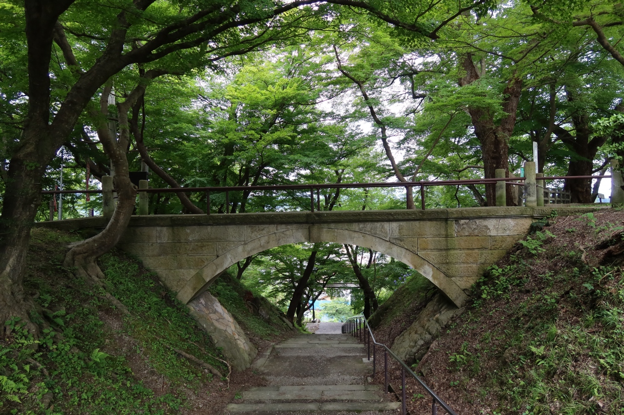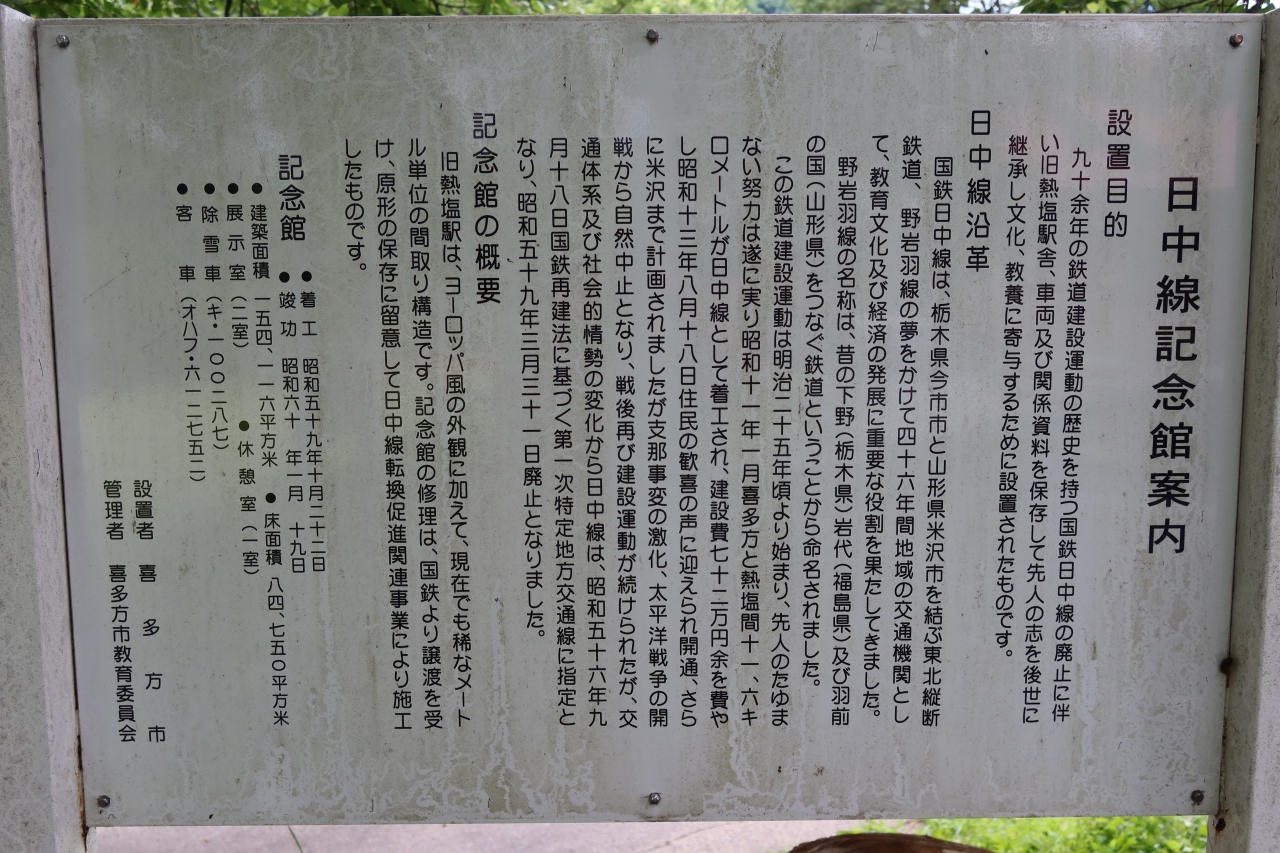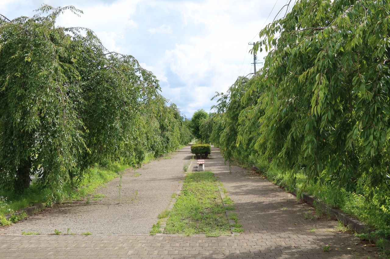 1984年に廃線となった、喜多方駅と熱塩駅を結んでいた旧国鉄日中線の線路跡の一部を整備して遊歩道にしたのが日中線記念自転車歩行者道です。しだれ桜の名所としてしられますが、訪れた7月は緑の葉が覆いしげるただの遊歩道でした。桜の花の時期以外は行く価値はないかと思います。
