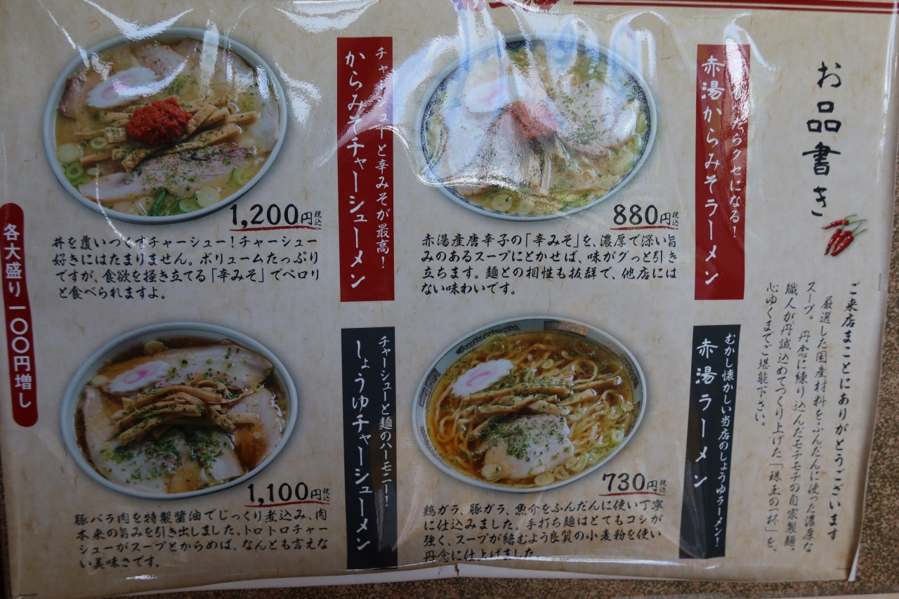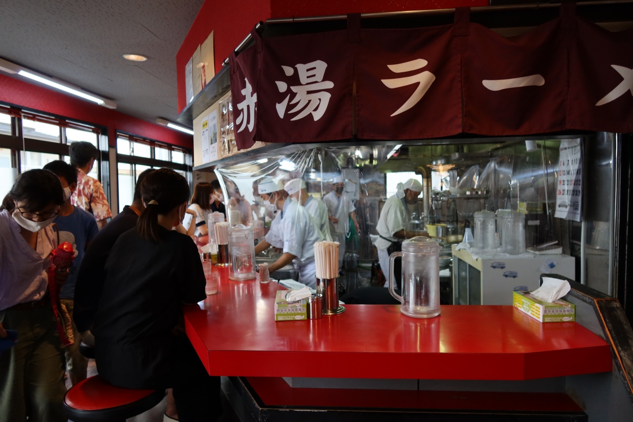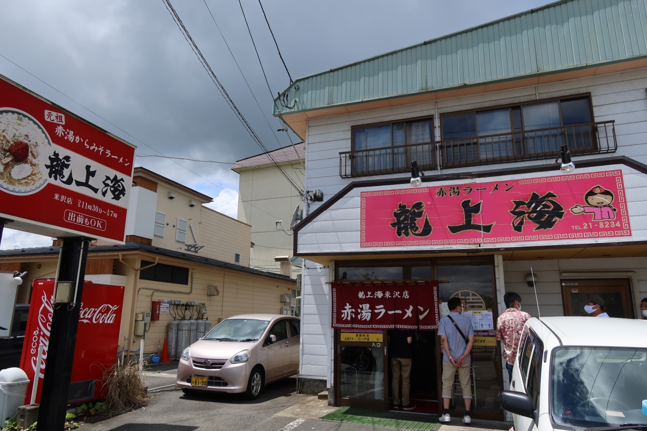 米沢の北側にある置賜総合支庁本庁舎の近くに赤湯辛味噌ラーメンで有名な龍上海の米沢支店があります。赤湯に宿泊したのですが、本店は混むと思い米沢支店開店後10分後位に訪れたのですが、店頭には既に入店待ちの列が出来ており、人気の高さの驚きました。30分程待って注文したのは、勿論赤湯辛味噌ラーメン。辛味噌を混ぜずにスープを飲むと普通の味噌ラーメンですが、ニンニクの効いた辛味噌を溶かすと味が一変。やみつきになる美味しさです。並んででも食べる甲斐があるラーメンです。