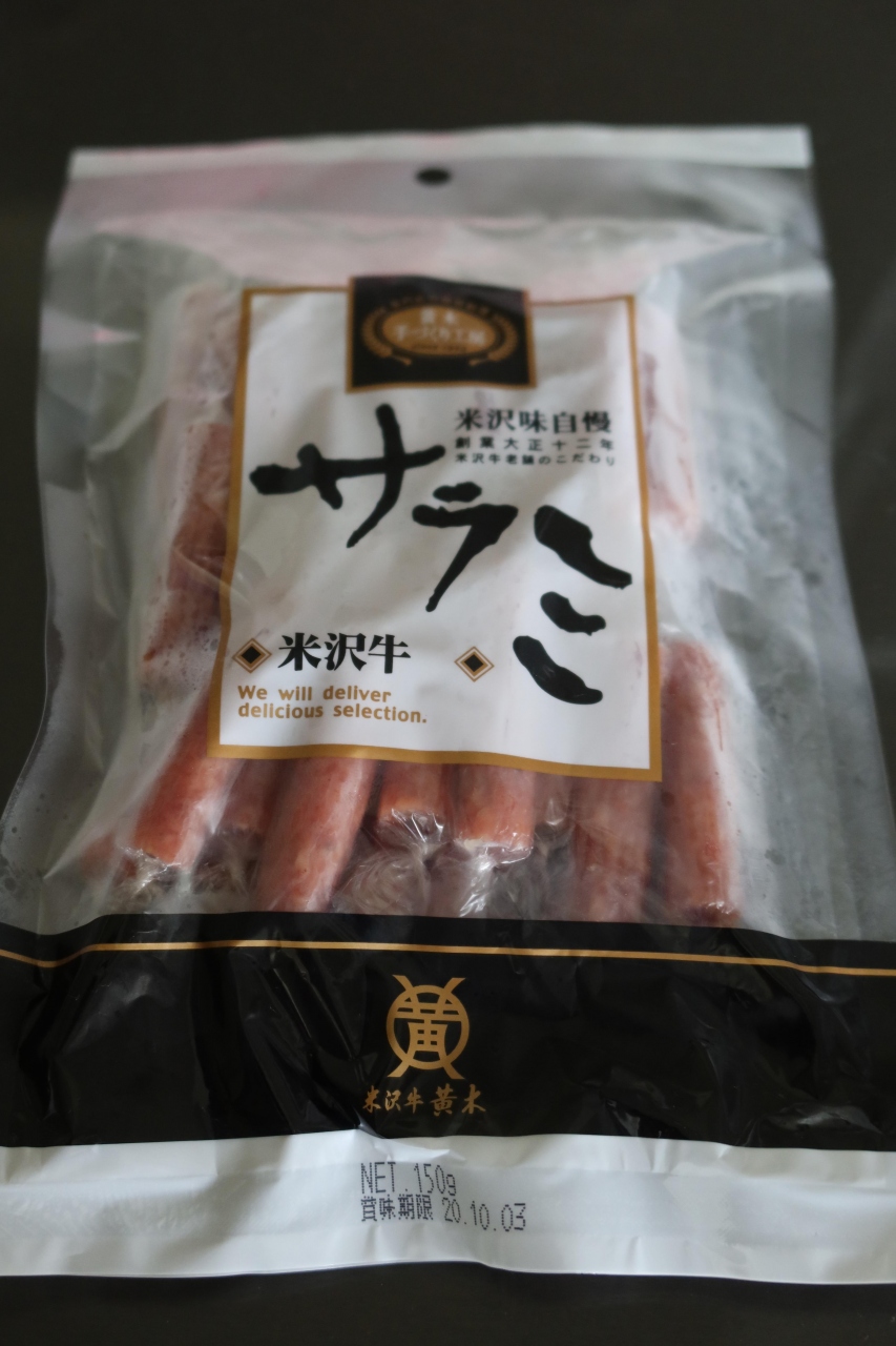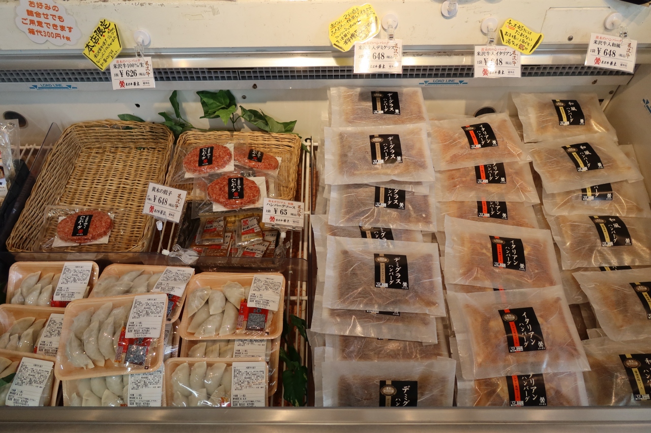 米沢駅から住之江町通りを東に進み最上川の橋を越えた先に米沢牛の黄木本店があります。店内では米沢牛の食肉を量り売りするだけではなく、贈答用肉、気軽に買えるサラミ、ハンバーグ等も販売されています。裏にある直営店で米沢牛を頂きたかったのですが、ちょっと高いので、冷凍ハンバーグをお土産に購入。スーパーで売られているハンバーグとは一味違い、肉自体がとっても美味しいです。お土産に冷凍ハンバーグはお薦めです。