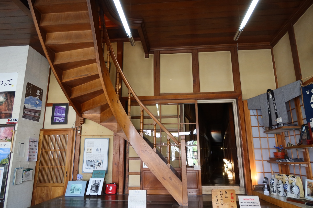 喜多方の老舗味噌醤油店である若喜商店のレンガ蔵の一階に縞柿の蔵座敷があります。中に入るとは出来ず、ガラス越しにしか見られないので、良く見えませんが、天井、柱、座卓まで木目が美しい縞柿で作られている贅沢な造りの座敷です。無料で見学でき店員さんも説明してくれるのが良かったです。