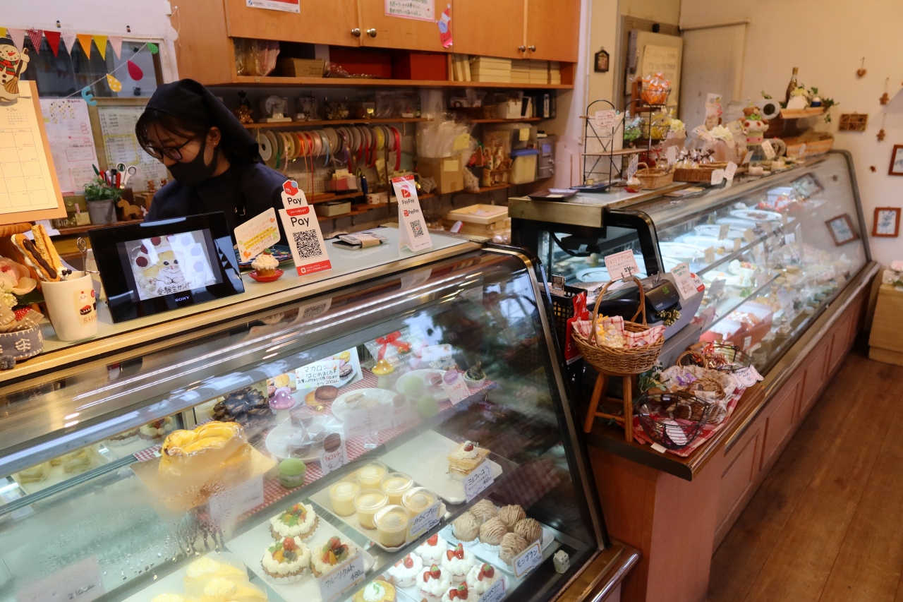 十日市場駅から300m程離れた宝袋寺入口交差点の近くにある洋菓子店です。店内では焼き菓子の他、カットケーキ、ホールケーキが売られています。今回購入したのはシュークリームと苺のタルト。全体的に小さなケーキが多く、値段も安いのですが、それ相応の味で、手作り感があるのが良い所。そのせいか地元の方が多く買いに来ていました。