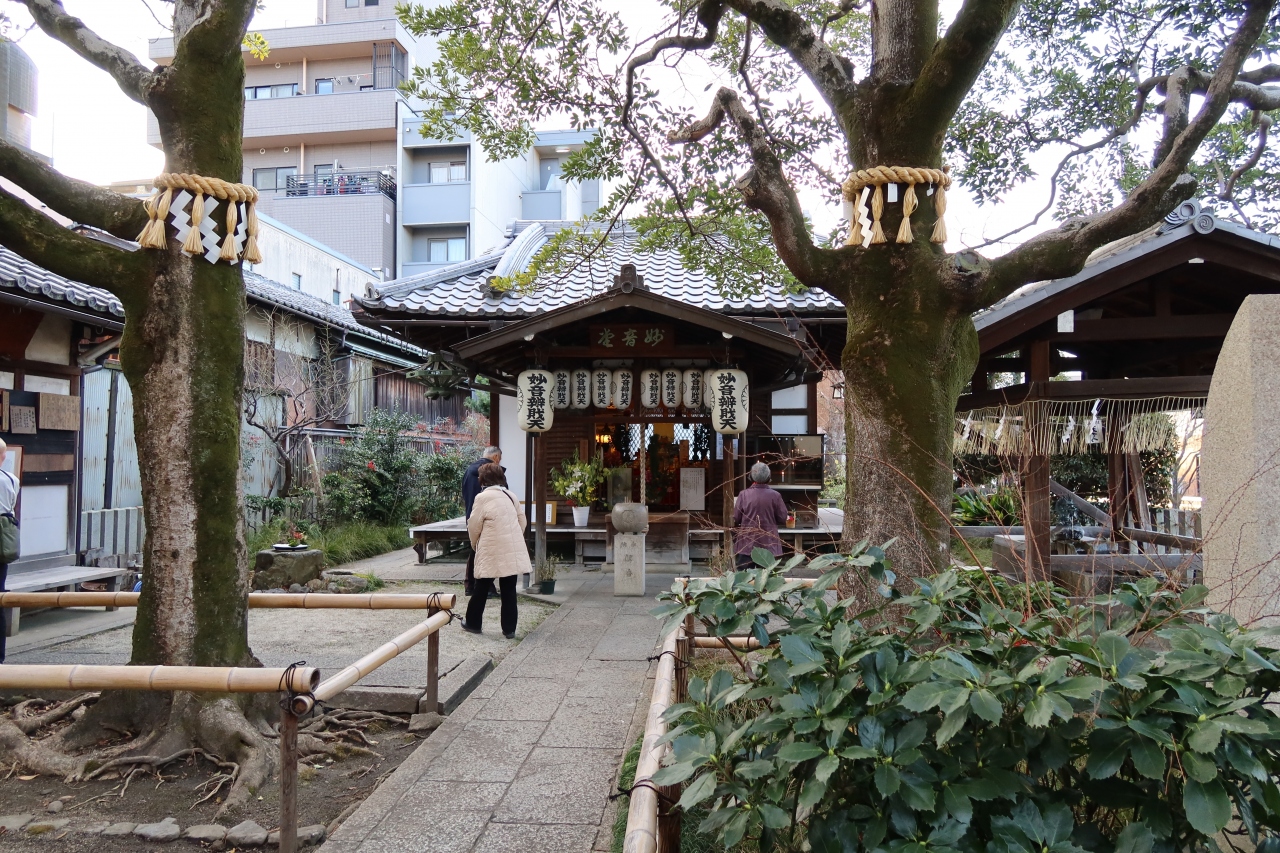 出町柳近くの鴨川に架かる出町橋の西側袂のある神社が青龍妙音弁財天です。本尊は青龍妙音弁財天画像と絵と言う変わった神社。元々は伏見離宮に祀られており伏見御所の弁財天」だったそうです。妙音と名が付き音楽の神様ともいわれ、芸事の神様としても慕われている様で、初詣に参る人も思った以上に居ました。ちょっと穴場的な弁財天です。