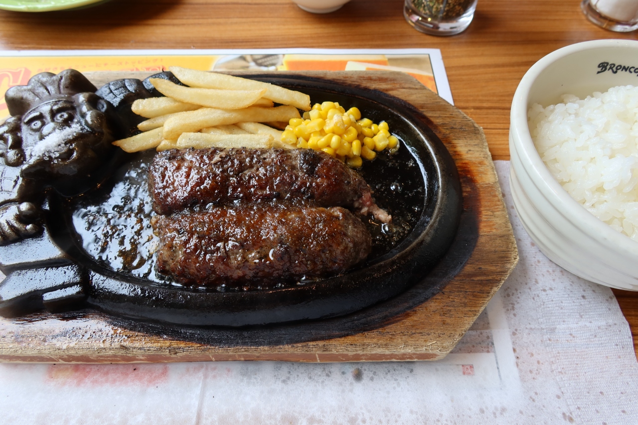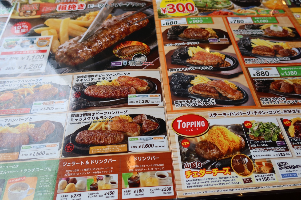 ランチで頂いたのは一番ポピュラーな炭焼き粗挽きビーフハンバーグランチ。グリルで棒状に焼かれたハンバーグはびっくりドンキーのハンバーグとは一味違う美味しさ。サラダーバーも充実していて、スープが付いて1210円とはコスパも良い所も気に入りました。
