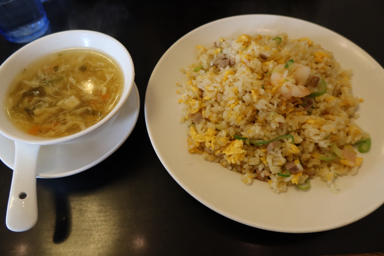 江田駅の西口から150m程西に行った住宅街の中にある中華料理店です。店内はカウンター席とテーブル席があります。昼前に行ったのですが。既に5組程の先客がおり、地元の人が良く訪れるお店の様です。頂いたのはチャーハン+ハーフラーメン900円。チャーハンはパラパラに仕上げられ、ハーフラーメンも本格中華スープでとても美味しい。コスパも高く、駅から遠くもなく、駐車場も完備された便利で美味しい中華料理店です。