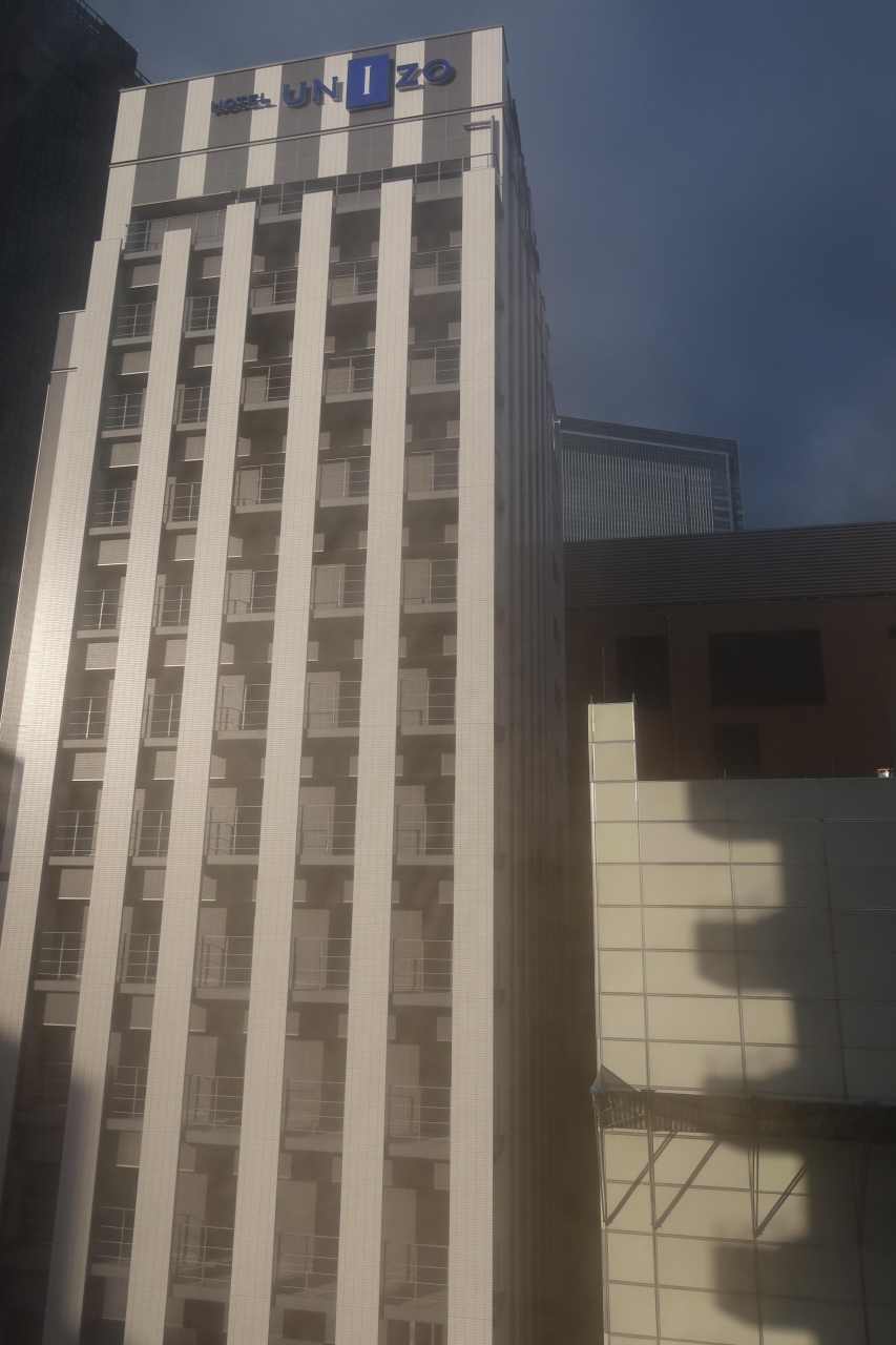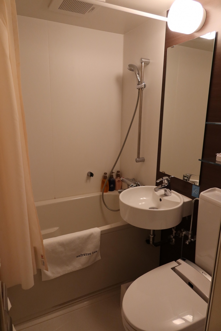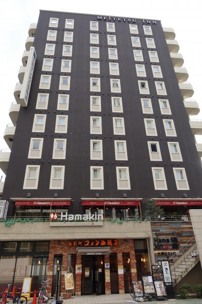 JR名古屋駅の桜通り口から見て大名古屋ビルヂングの裏手200m位の所にある名鉄系のホテルです。元旦に寝るだけだったのでコンパクトツインの部屋に1泊しました。名前の通り非常にコンパクトな部屋で、別途は幅の狭いシングルベットが隙間なく並べられており、殆どダブルベットと同じ感じでした。そのベットも何故か一つは傾いてました。