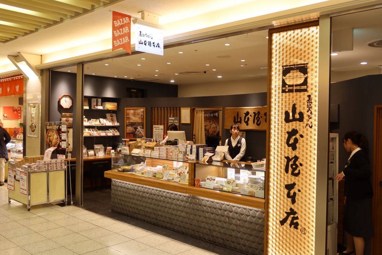 JR名古屋駅の太閤口を出た先にある地下街エスカの大階段を降り左手に行った先に山本屋 エスカ 売店があります。名古屋名物味噌煮込みうどんの山本屋本店の味噌煮込みうどんの販売オンリーのお店で買って帰れば家でも同じ味が味わえます。