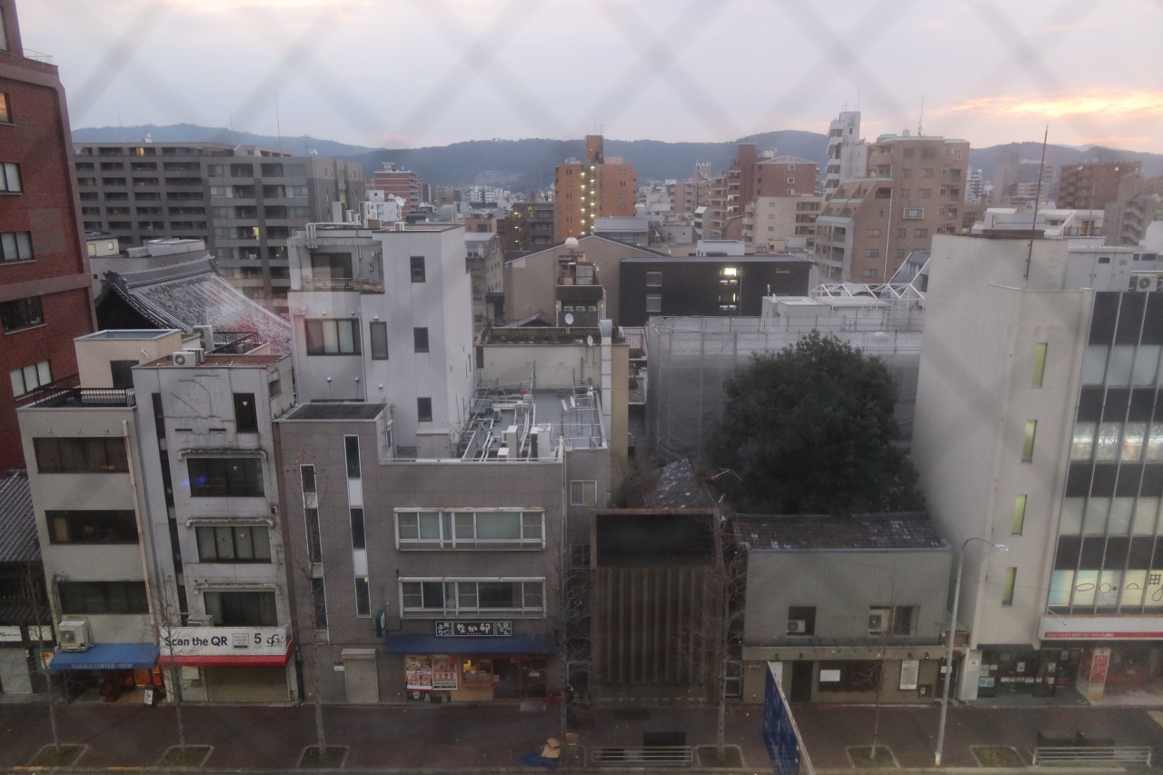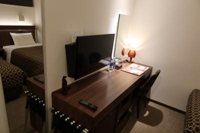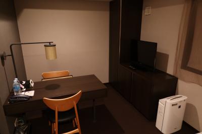 烏丸丸太町から二筋北に行った下立売通りを入った所にあるビジネスホテルです。宿泊した部屋はAタイプのツインの部屋。部屋には明り取りの窓しかなく外は見えません。部屋は狭い物の寝るだけであれば快適に過ごせる広さで、清潔感もあります。気になったのはドアのオートライトが洗面所に行くたびに付くのが気になりました。