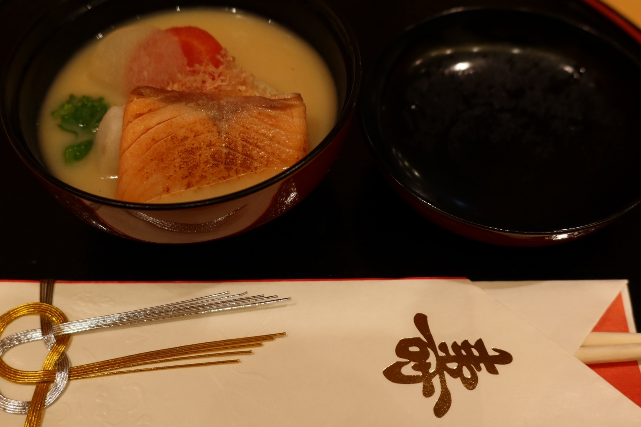 からすま京都ホテルの地下1階にある和食のお店です。正月2日に京の正月料理を食べに行きました。予約してあったのと正月だからか店内はガラガラ。それが理由か通された席はほぼ個室の席でした。見た目にも艶やかな京の正月料理はどれも美味しかったですが。量が少ないのが難点。中々食べる機会がない正月料理が楽しめてよかったです。