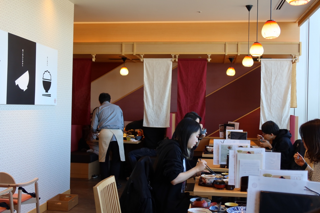 二子玉川ライズのタウンフロント7回にあるとろろのお店です。土曜の1時半過ぎに行きましたが、受付では20組程の待ち行列。その為か居ない人も多く、結局20分程で入れました。お店はうなぎの寝床の様に奥に長い造りです。