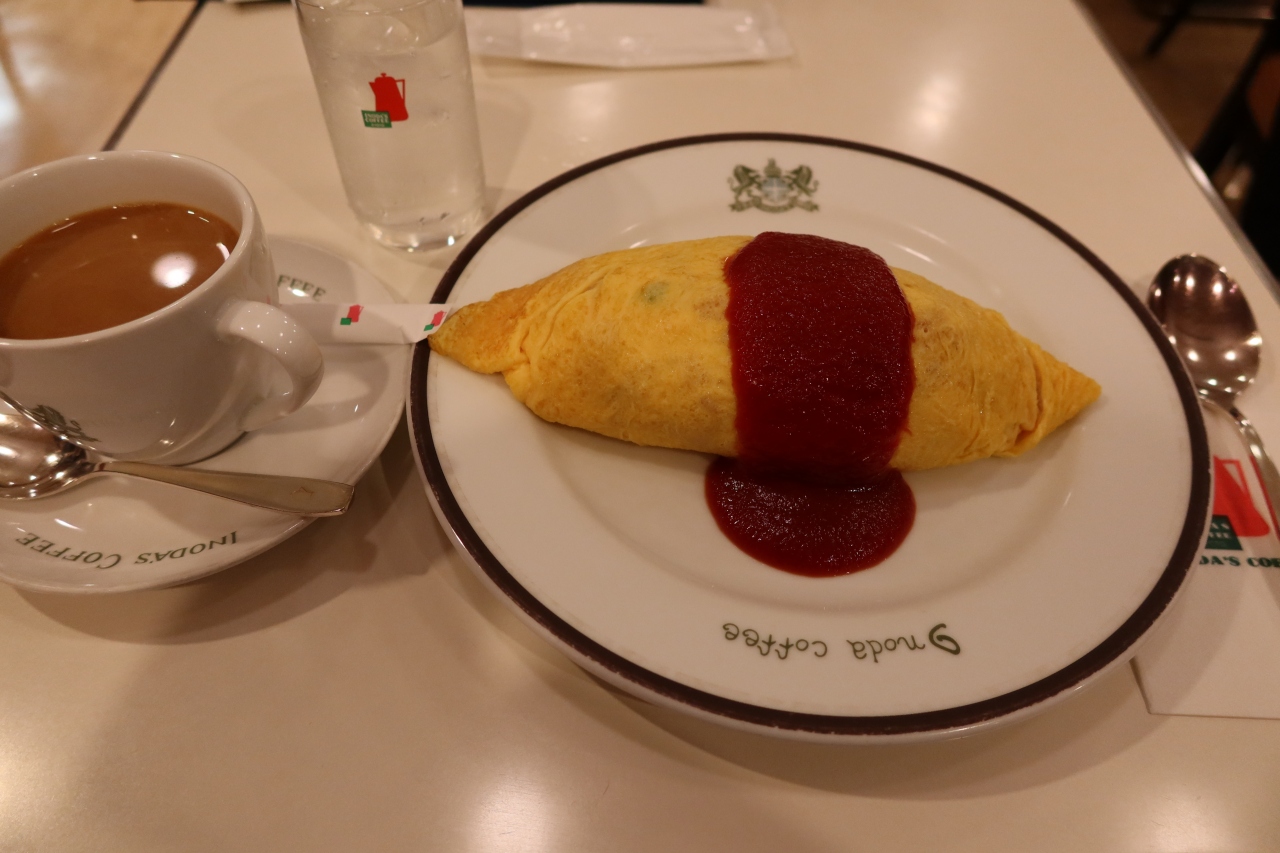 四条烏丸の大丸近くにあるビルの地下にイノダコーヒーの四条支店はあります。以前はB1,B2Fと2フロアーあったようですが、現在はB2Fだけの営業。昼前後に行くと店頭に5人程が待っている状態でしたが、回転が速く空くに入れました。頂いたのはオムライスのセット。普通の喫茶店よりは明らかに高いですが、味は絶品。さすが京都を代表するコーヒー店です。駅から近く入りやすいお店です。