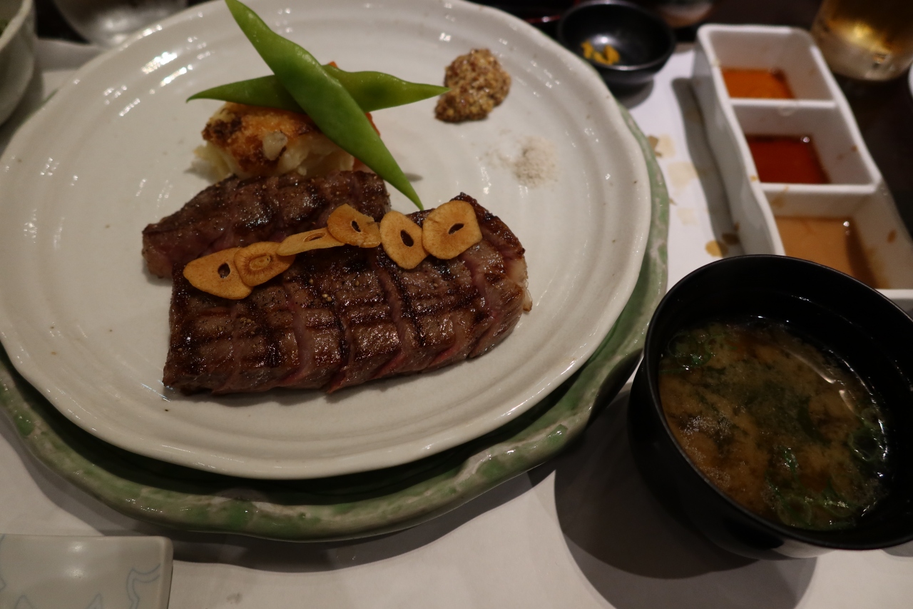 神宮丸太町駅から聖護院道を東に行き東大路を超えた所に肉の専門店 はふう聖護院店があります。店内は入ってすぐの所に厨房が見えるカウンター席。奥にテーブル席と個室があります。頂いたのはサーロインステーキの肉料理コース8500円。とろけるような肉の味を堪能できるコースで大満足。繁華街でもないこんな場所にこんなお店があるとは思いませんでした。
