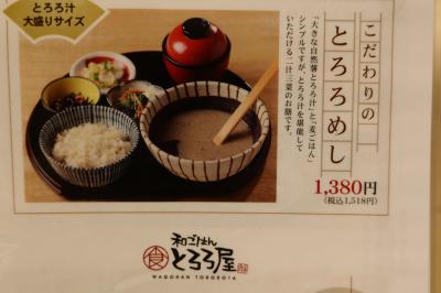 色々な定食があるのですが、とろろの味を満喫したかったので、とろろめしと、とろろの磯部揚げを頂きました。とろろの味は私の好きなみそ仕立てではなかったですが、麦飯はお替りが自由にでき、とろろを満喫出来ました。都内ではとろろの店は少ないので中々良いお店です。- 旅行時期