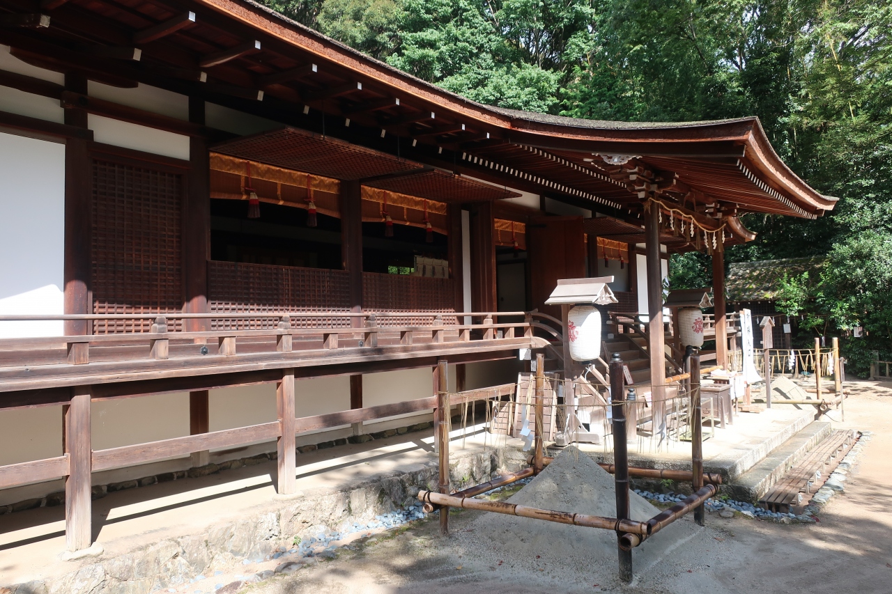 宇治神社からさわらびの道を2,3分歩いた先に宇治上神社があります。日本最古の神社検知であり、世界遺産にも登録されている神社なのですが、意外と知られていない神社です。木々の緑が綺麗な神社で、境内には国宝に指定されている美しい本殿、円錐の盛り砂のある拝殿、名水で知られる桐原水等見所も多く、宇治に行ったれ平等院だけじゃなく、こちらも訪れて欲しい神社です。