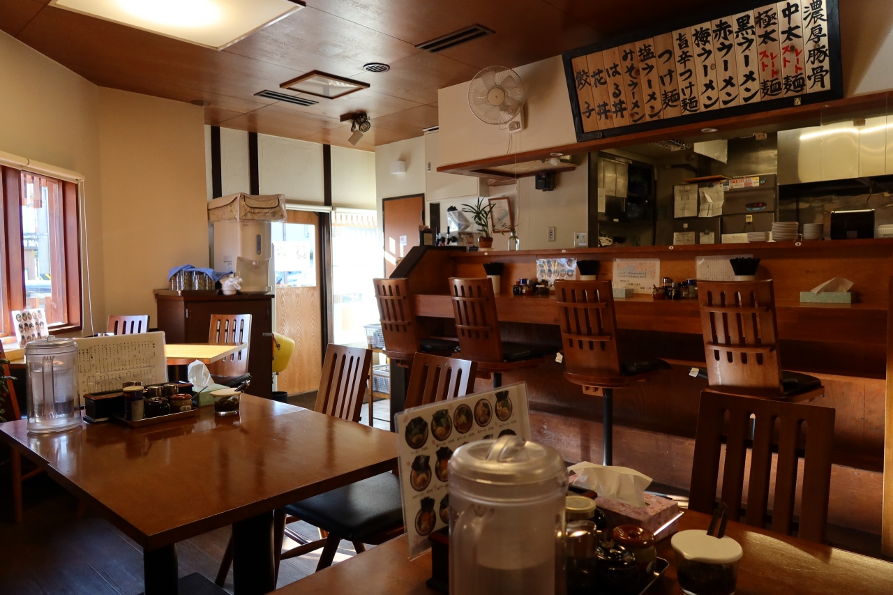 東名高速道路大和バス停にほど近い東名高速の立体交差点近くにあるラーメン店です。大和駅から歩いて行くと遠いですが、駐車場があり車で行くと便利です。