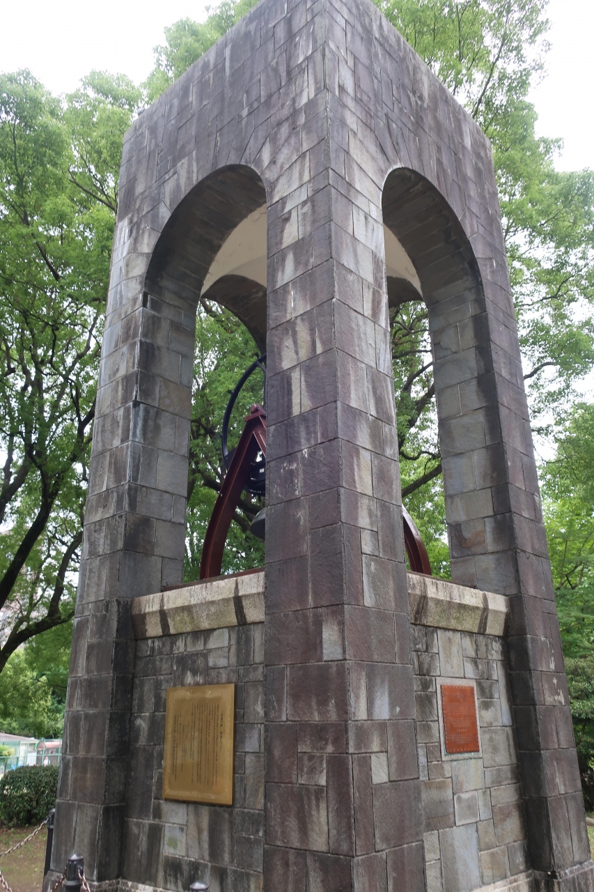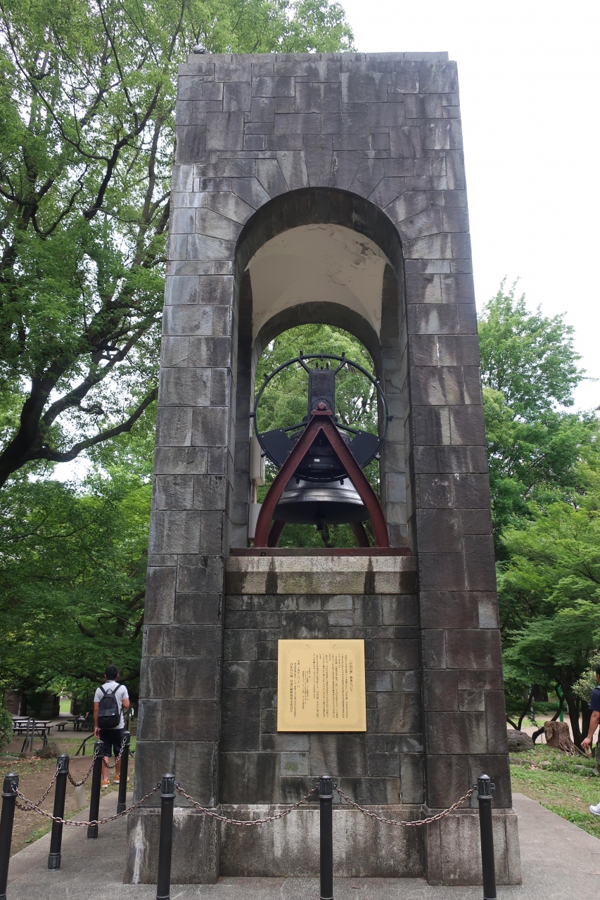 日比谷公園の北西部、三笠山の南にある鐘楼の中にある鐘が鐘です。アメリカのフィラデルフィアにある独立宣言の際に使われたLIBERTY BELLのレプリカの鐘で、戦後の昭和27年にアメリカから日本に寄贈された由緒ある鐘です。アメリカりょこに行った際に実物を見られなかったので、こんなところでレプリカが見られるとは思いませんでした。意外と小さかったので驚かされました。この鐘は修復され鳴るそうです。