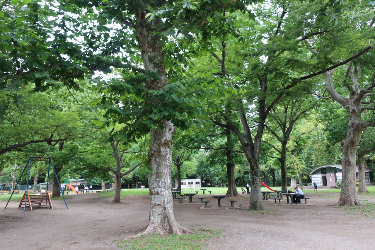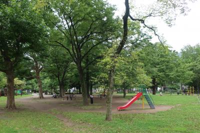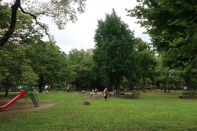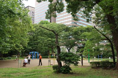 日比谷公園の中西部、テニスコートの南側に広がる柵に囲われた広場が草地広場です。広場の中には木々の植わる木立がある他、滑り台、鉄棒などの遊具、パンダ、カバ、リス、ゾウ、コアラなどの像が置かれ、日比谷公園の中でも一番子供が遊べる広場となっています。しかし、この広場に観光地的な要素はほぼありません。