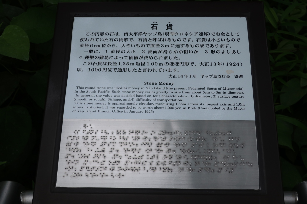 この石貨も何故ここに置かれているのかと思いましたが、当時のヤップ島は日本の統治下。それで日本に寄贈されたというのは間違いないようです。- 旅行時期