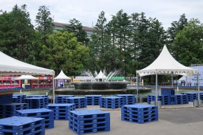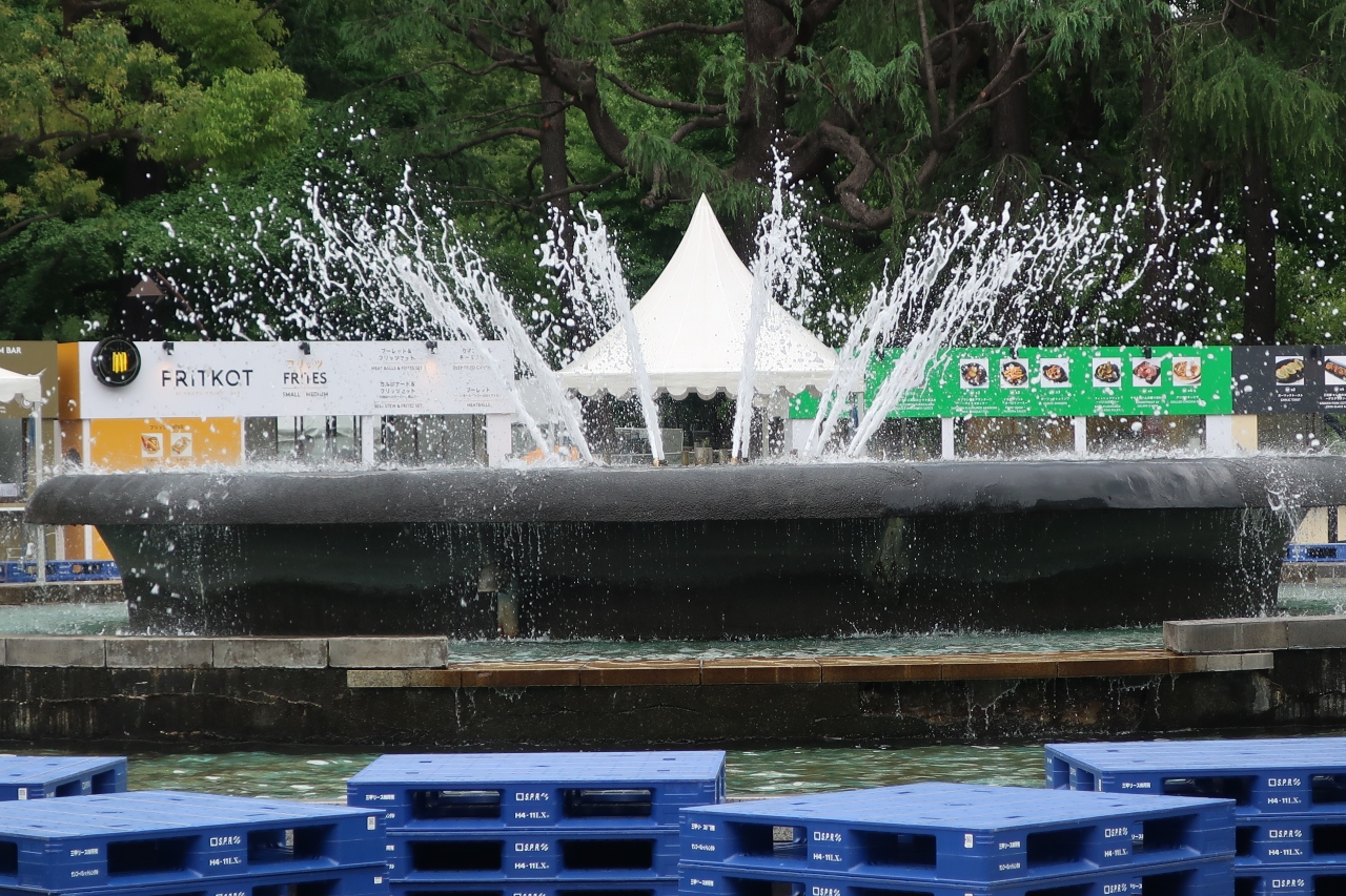 日比谷公園の小音楽堂と第二花壇の間の広場に大噴水があります。直径30m程の噴水池は三段構造の池で、その中から噴水が時間をおいて緩急をつけて吹き上げられ初夏に涼を漂わせており、絶好の休憩所です。しかし、訪れたときは丁度ビアガーデンの会場となっており雰囲気は台無しです。