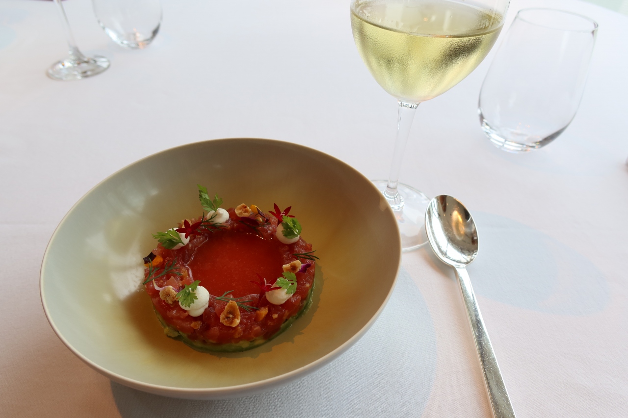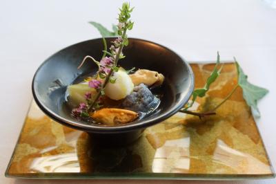 銀座一丁目駅から歩いて2,3分のZOE銀座ビルの8Fにあるレストラン ヒラマツ系列のフレンチ料理のレストランです。結婚記念日のお祝いで夫婦で訪れました。席は結婚式でも使えるような広い広間の窓側テーブル席。窓からは銀座のビルが目の前に見えます。頂いたのはメインに魚、肉料理の付いたランチコース。前菜から始まり、どの料理も手の込んだ装飾が施され食べるだけでなく、見た目も楽しめる、美味しい料理が味わえます。お値段は高めですが、記念日に使うのに良いお店です。